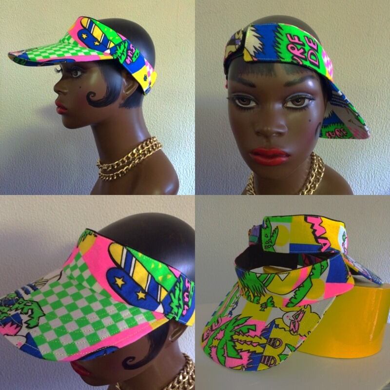 vintageのカラフルな布で作ったサンバイザー