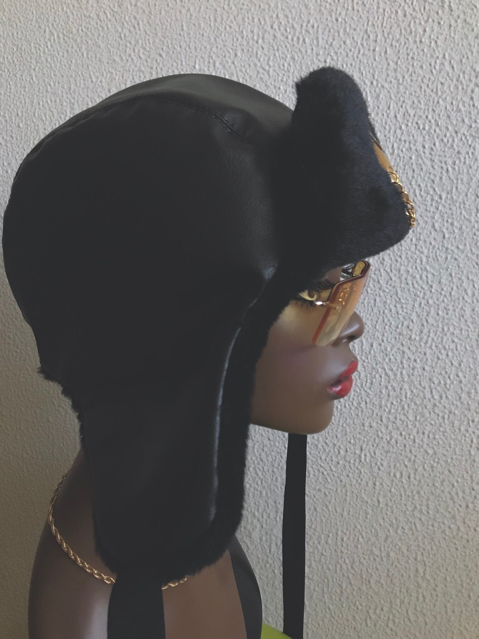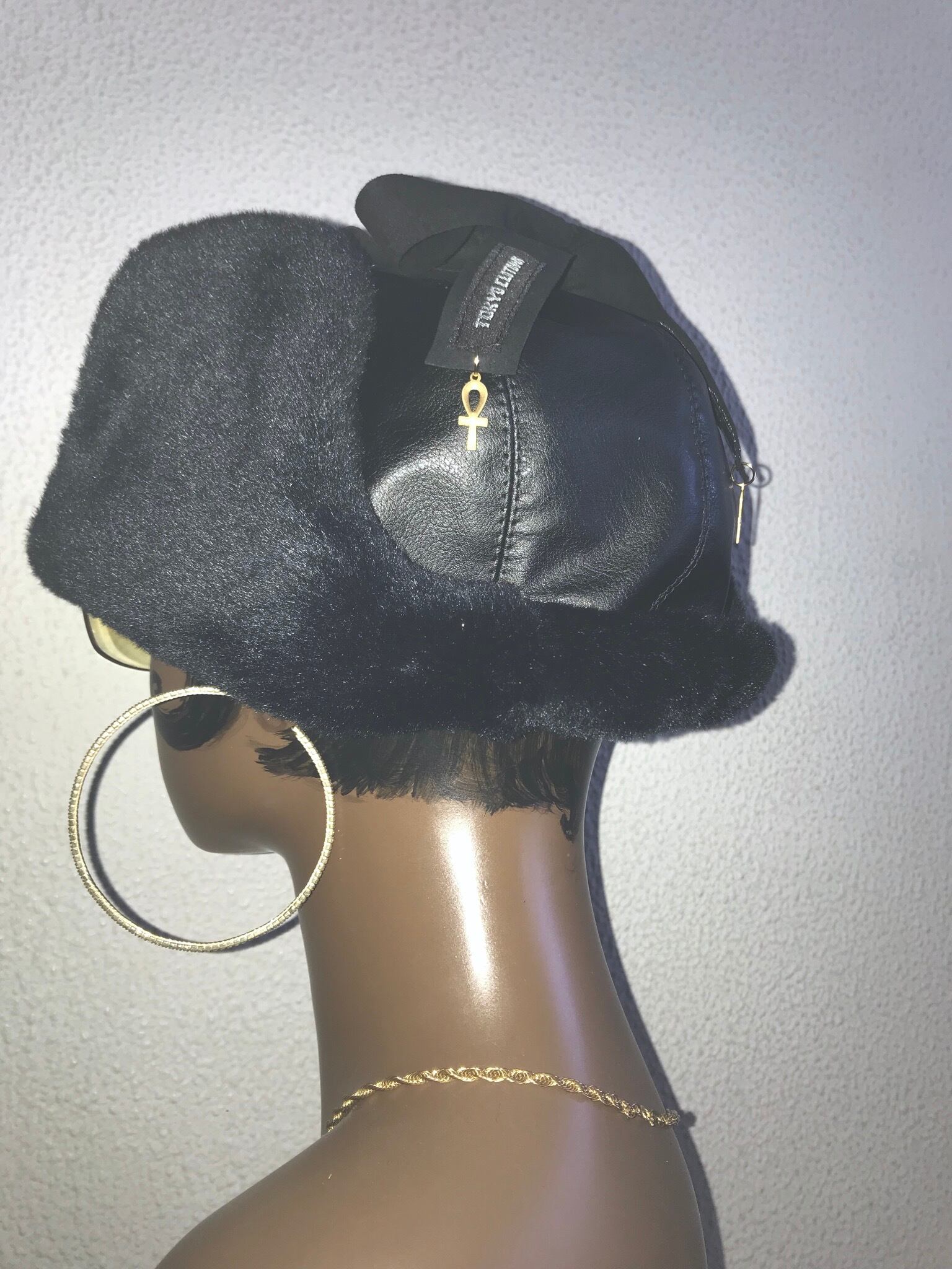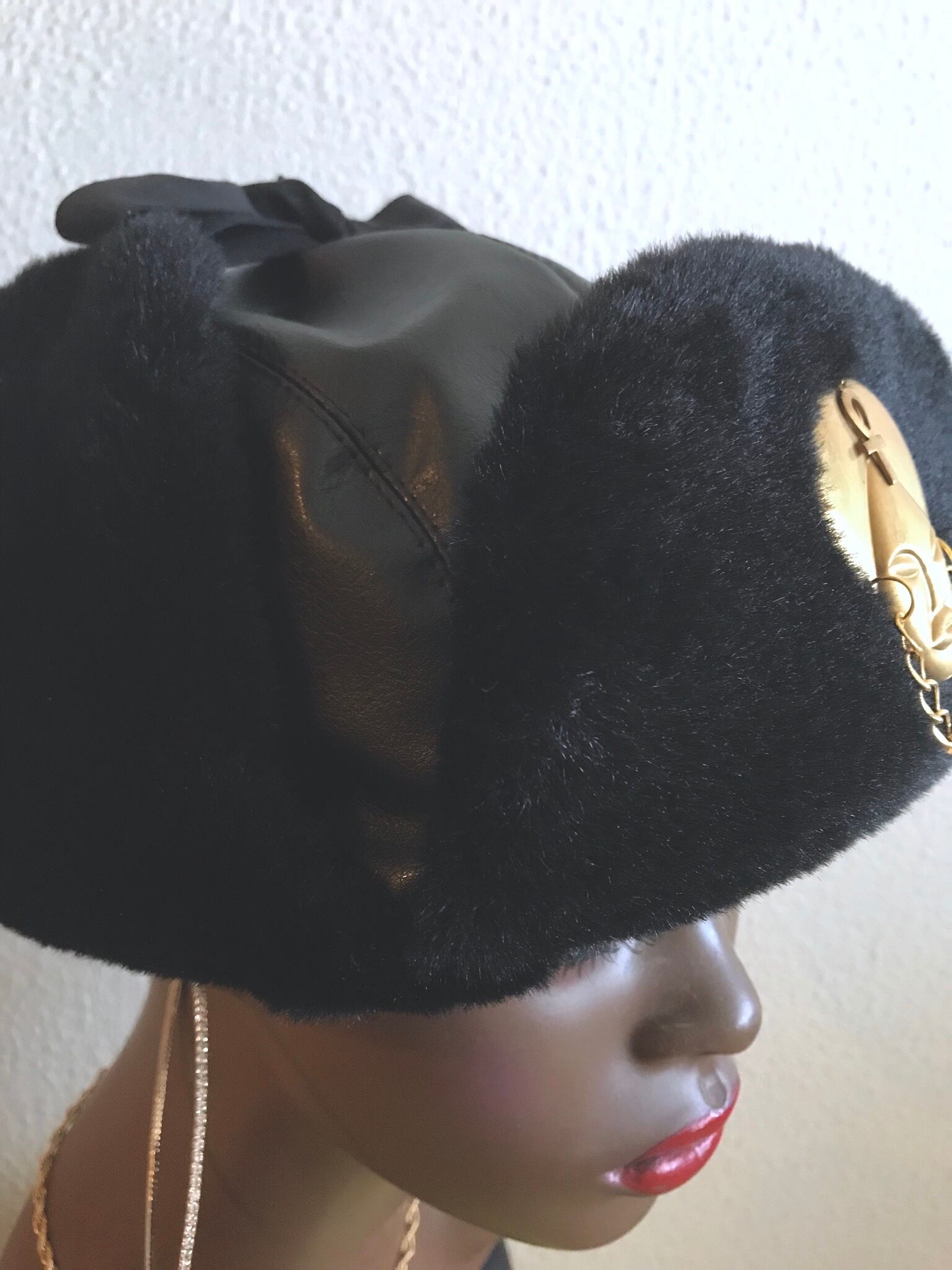 FレザーとFファーを使ったフライトキャップ