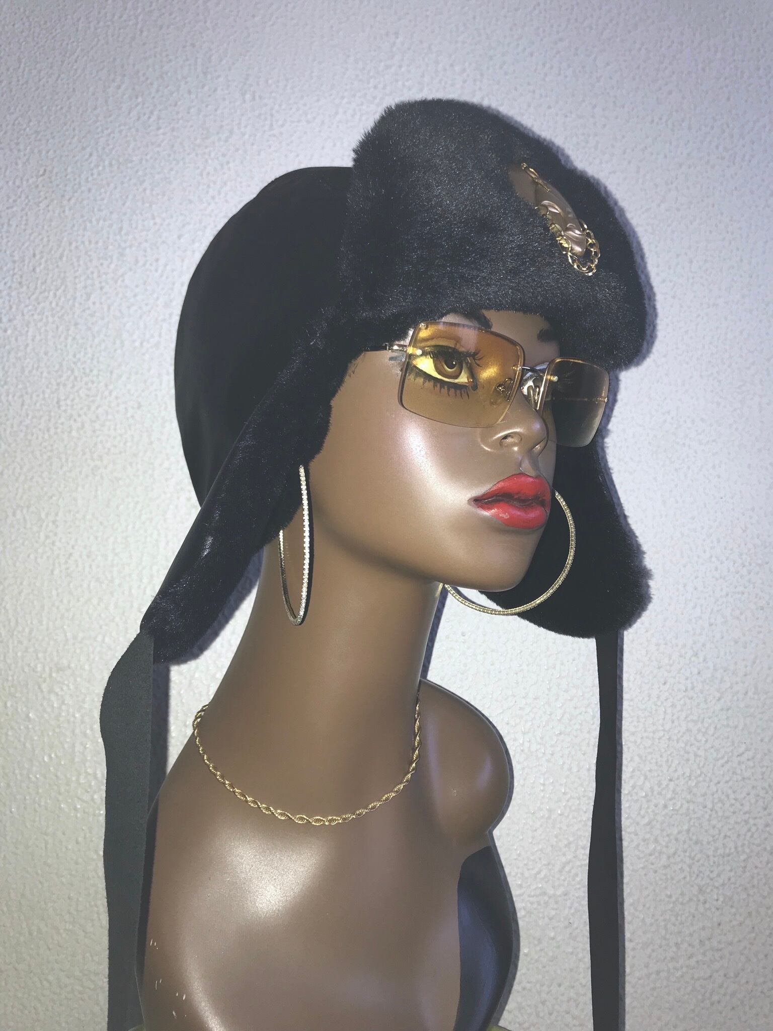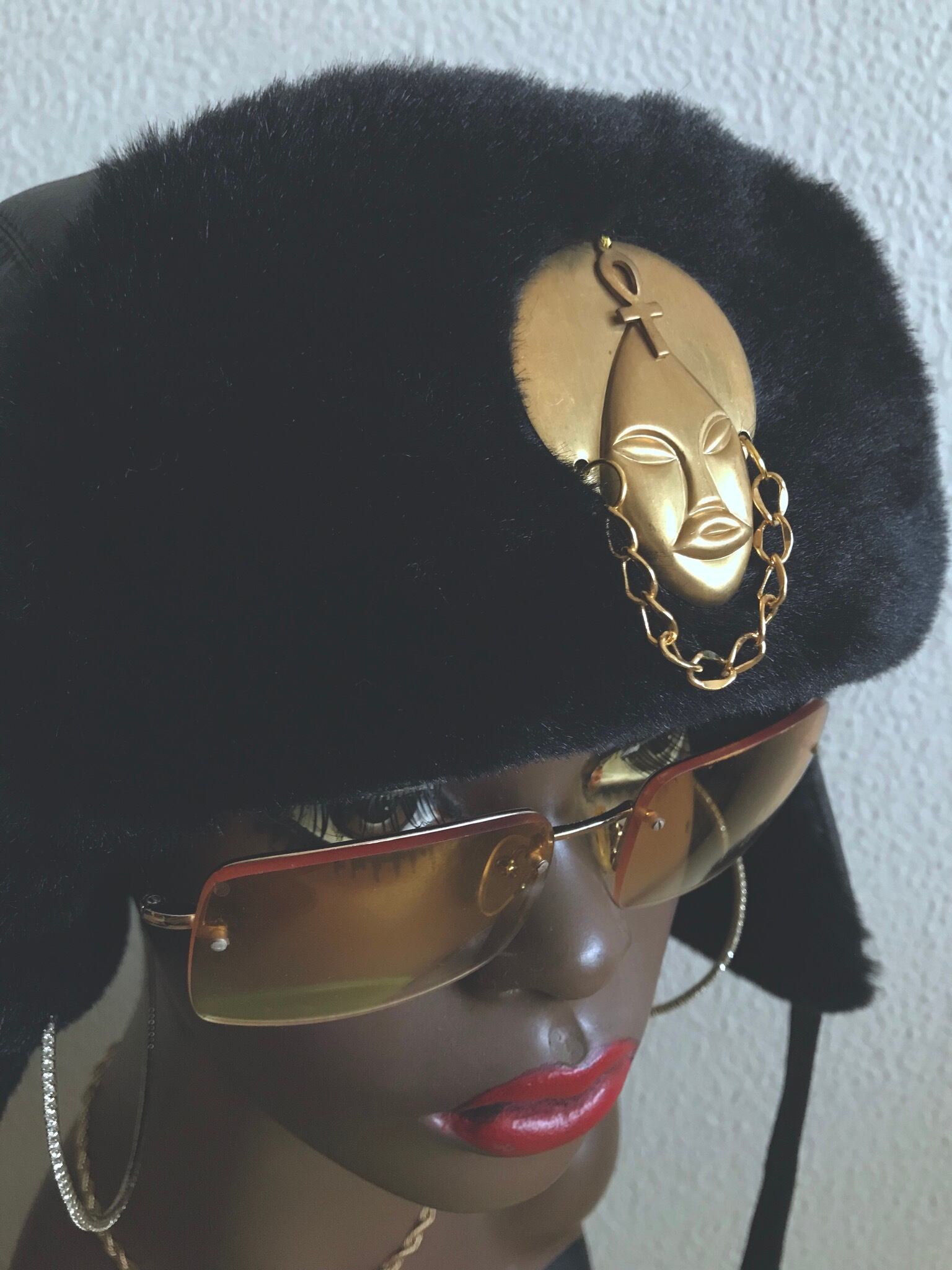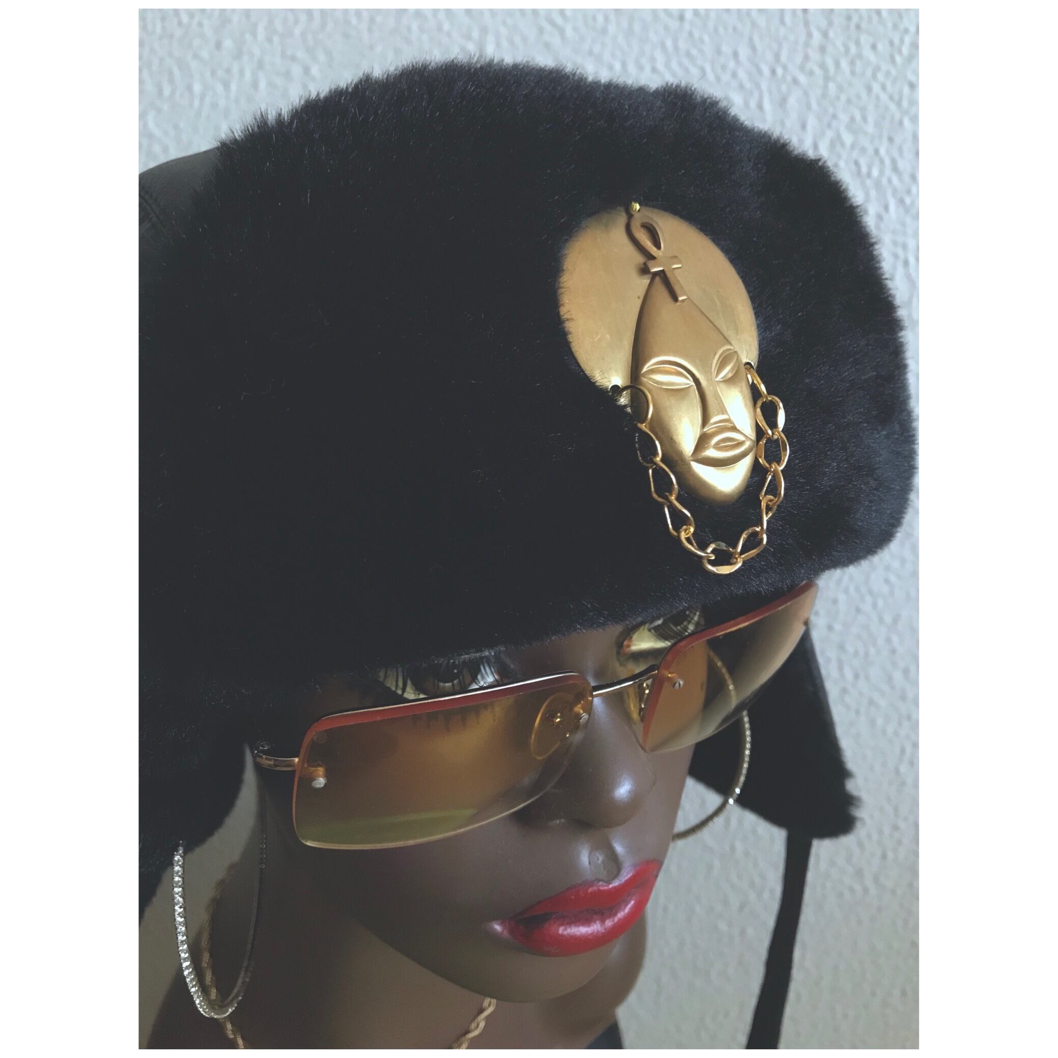 FレザーとFファーを使ったフライトキャップ