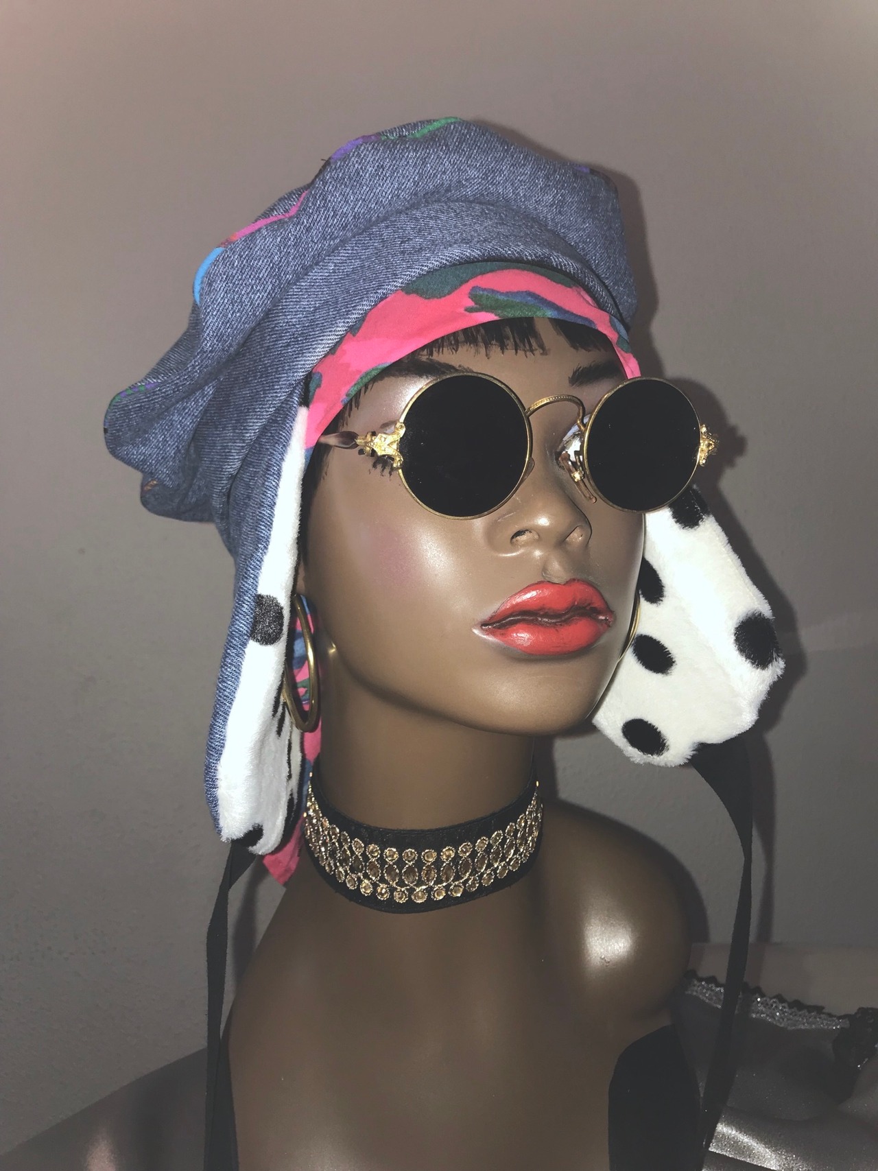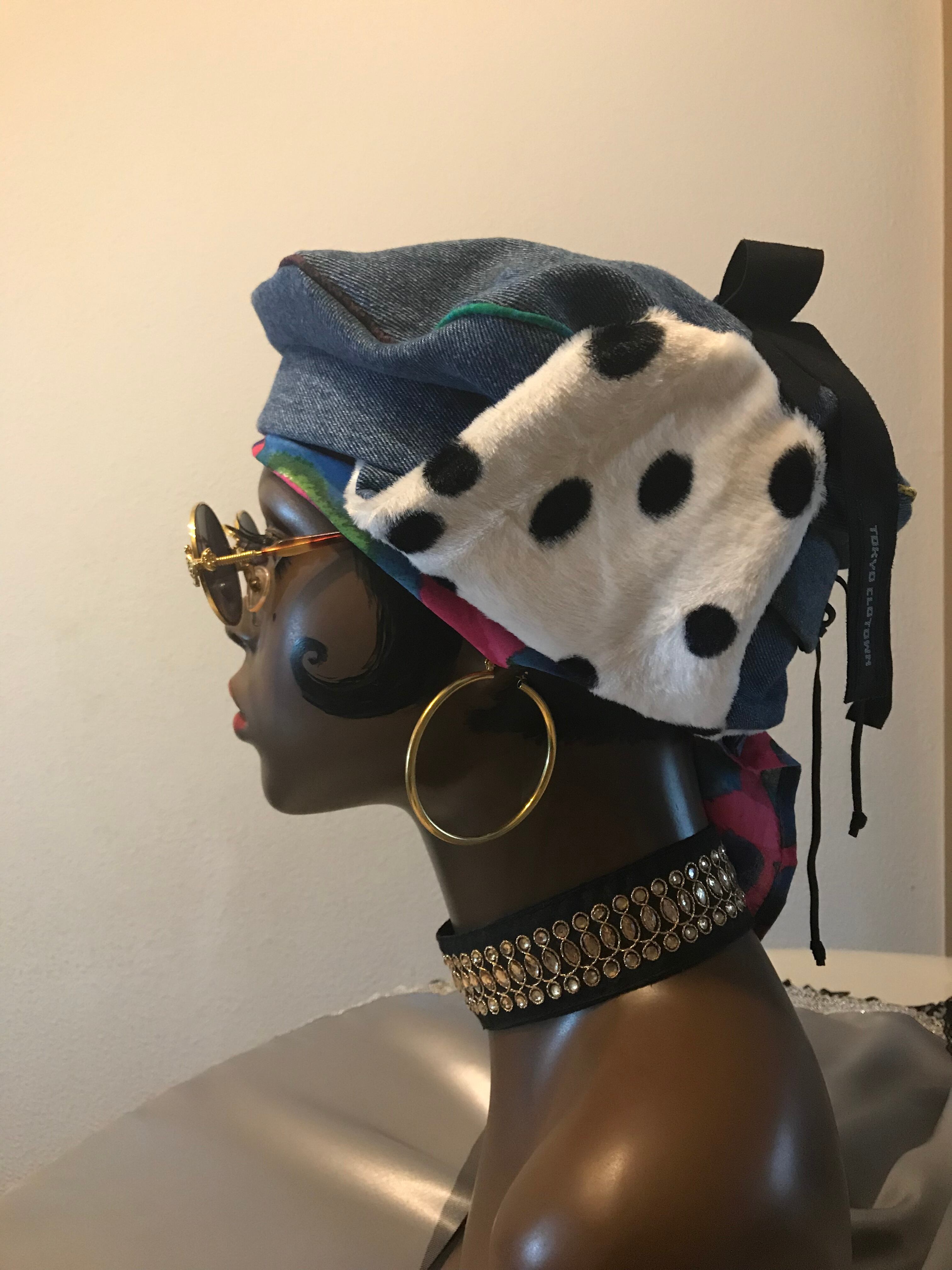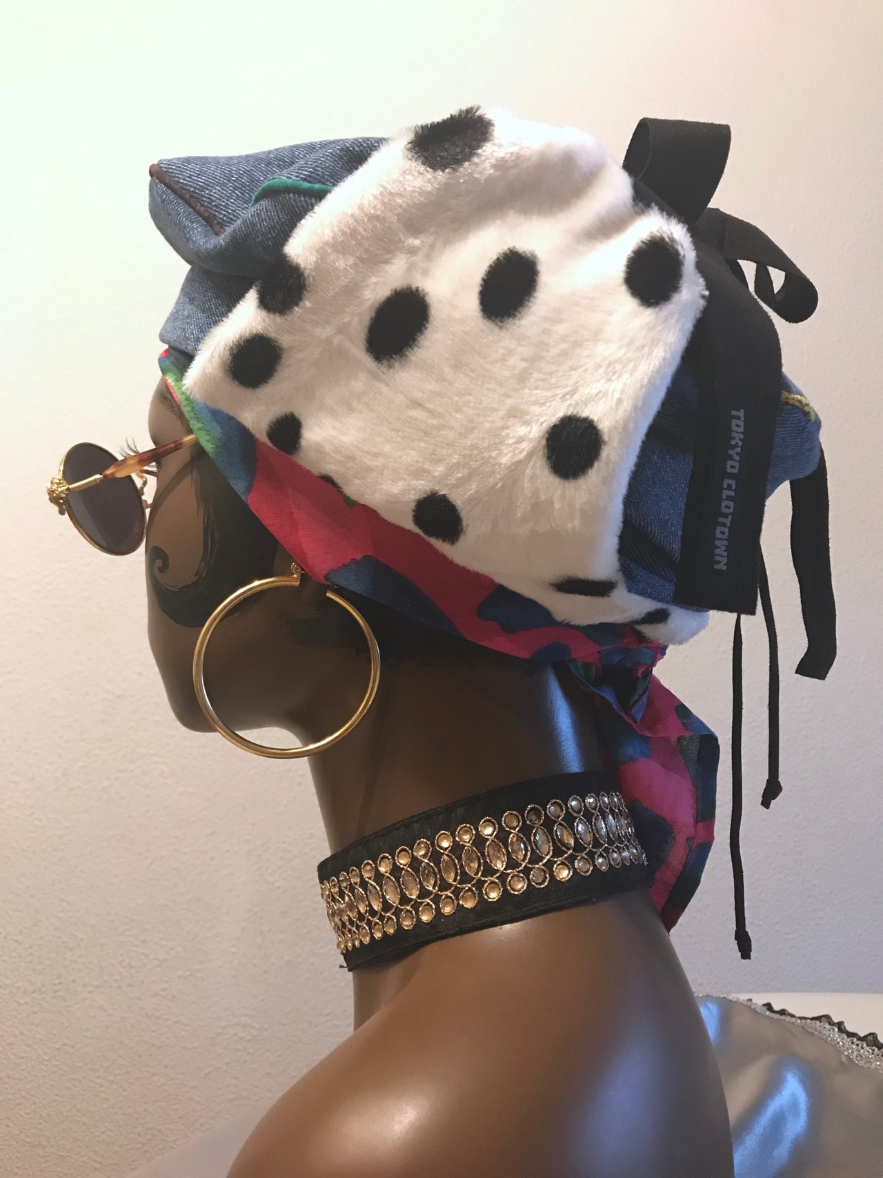トルソーは頭が小さい為ピンクのバンダナを巻いた上に被ってます。