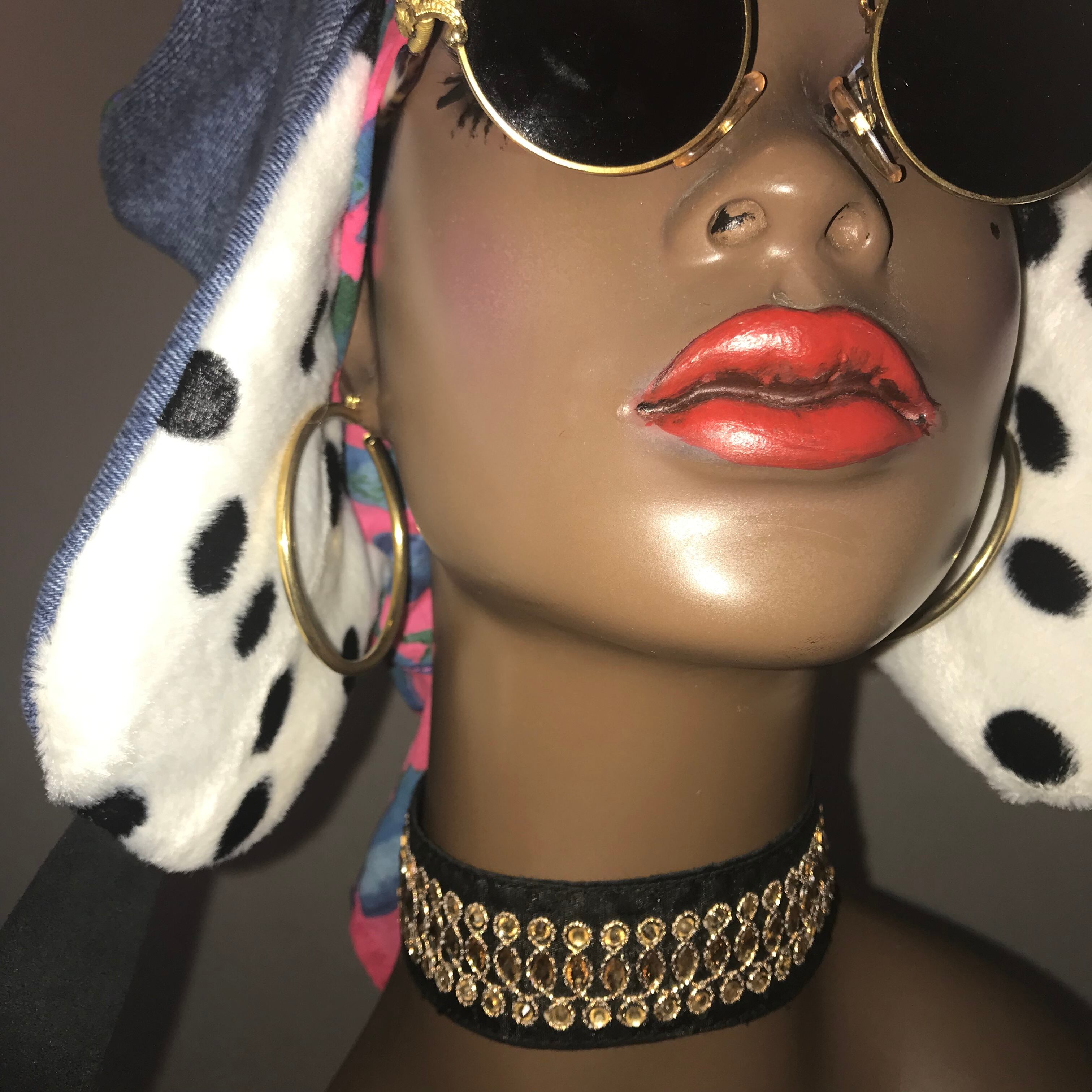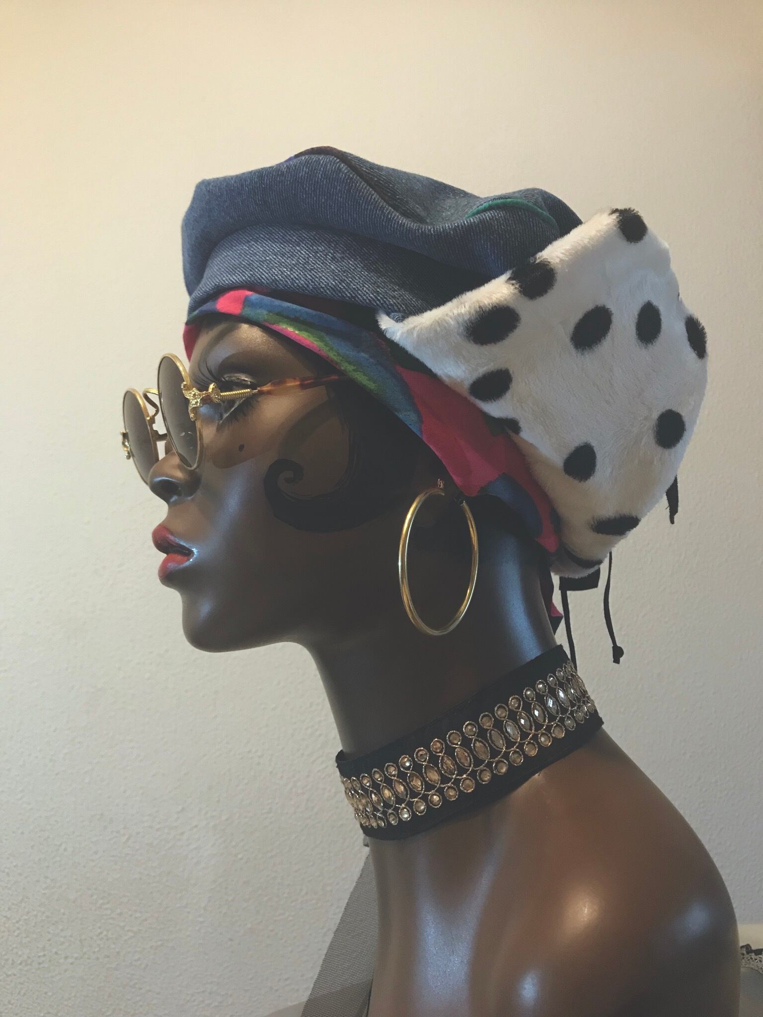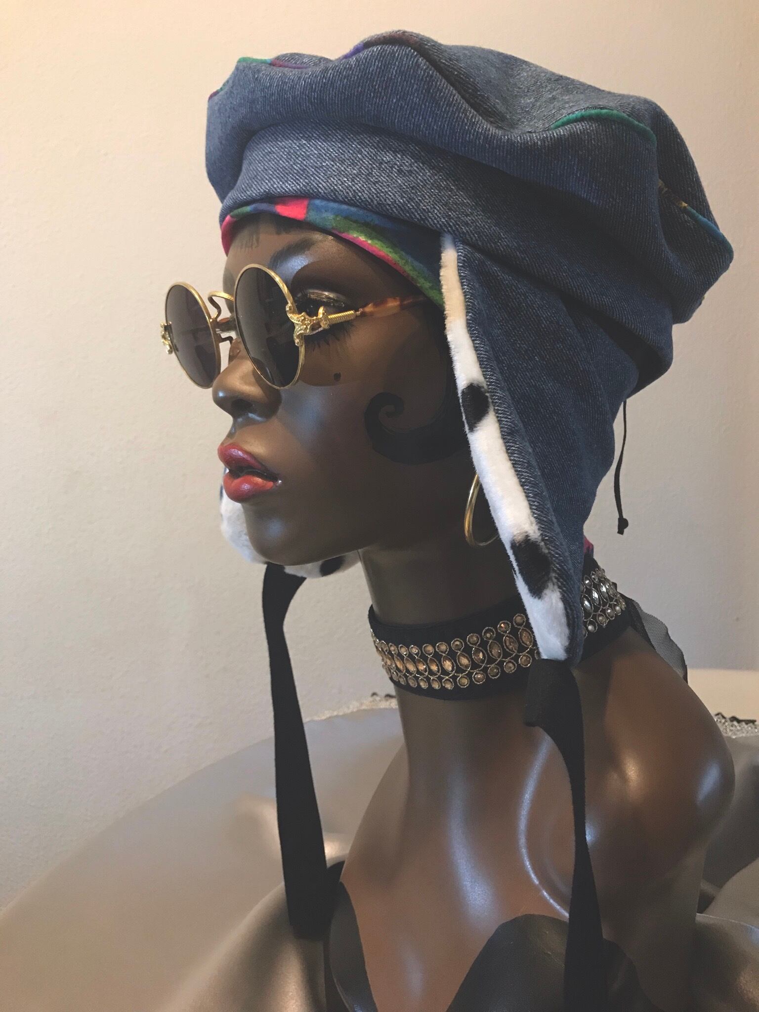 トルソーは頭が小さい為ピンクのバンダナを巻いた上に被ってます。