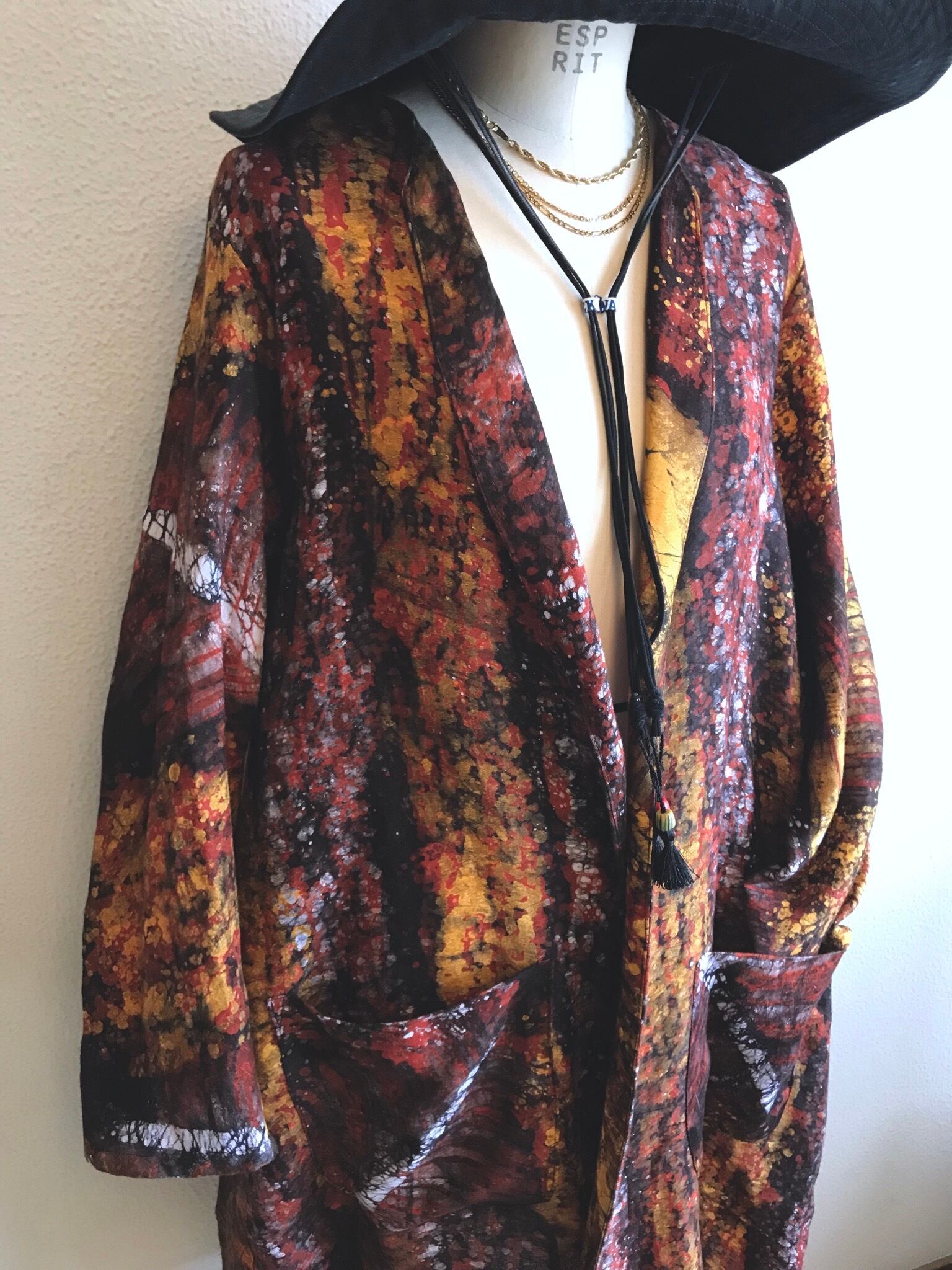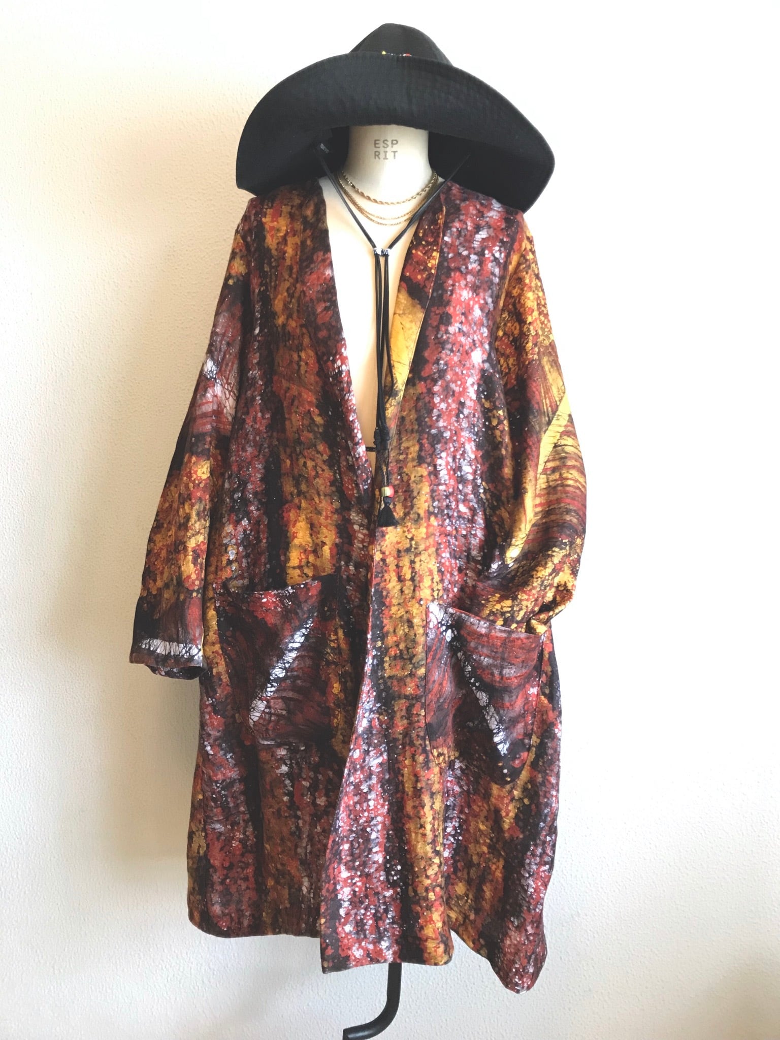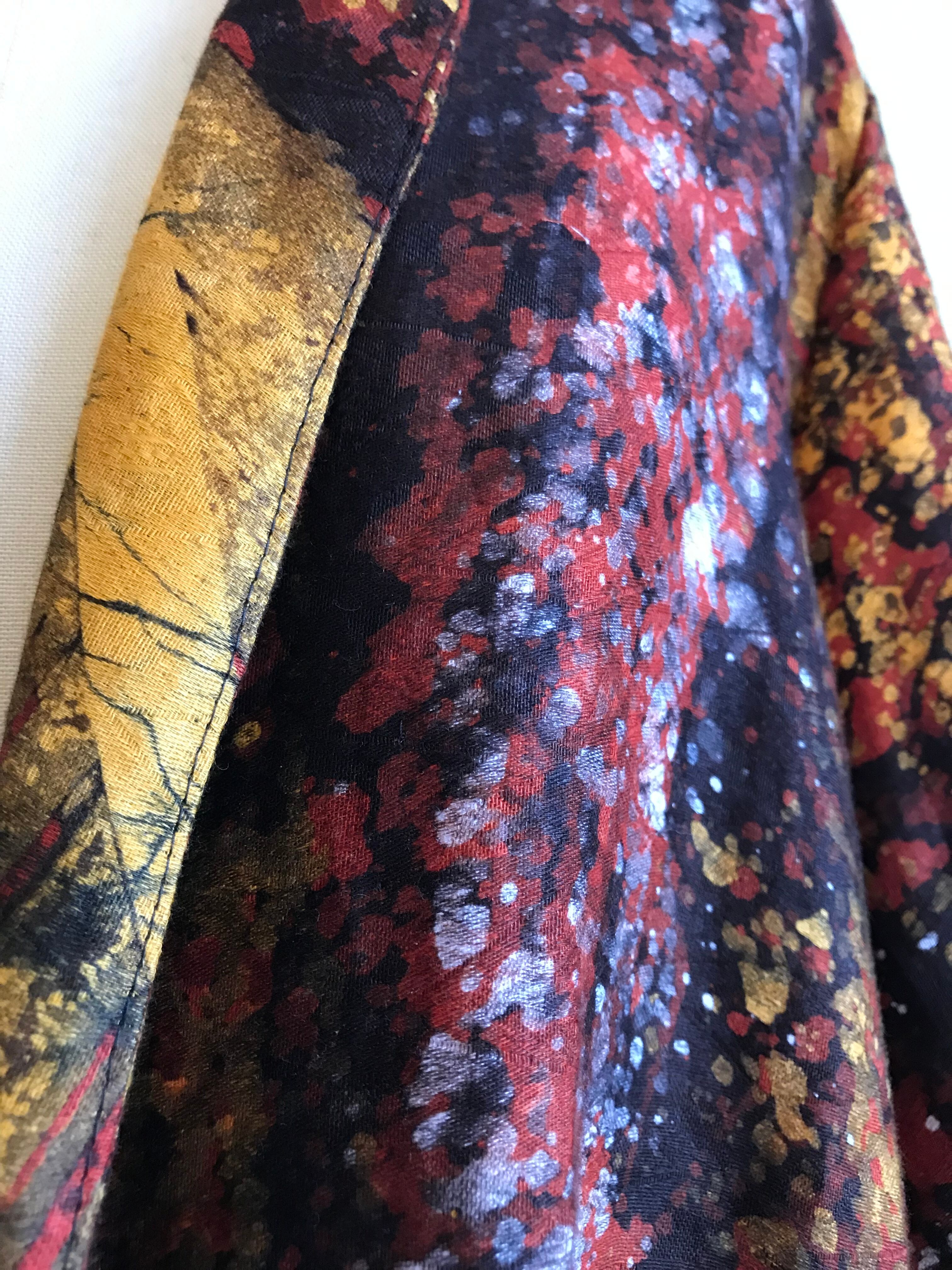 ガーゼ素材より少ししっかりした感じの柔らかい肌触りで肌寒い時期の羽織にぴったりです。