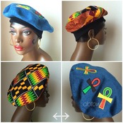 片面はアフリカ布、反対はデニムにアンクのワッペン(縫い付けてあるのでとれません)