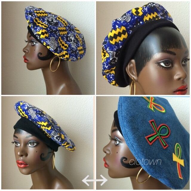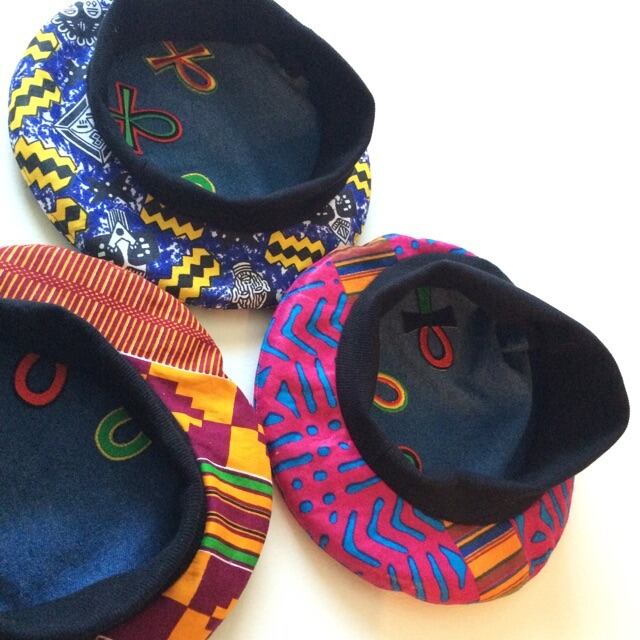 片面はアフリカ布、反対はデニムにアンクのワッペン(縫い付けてあるのでとれません)