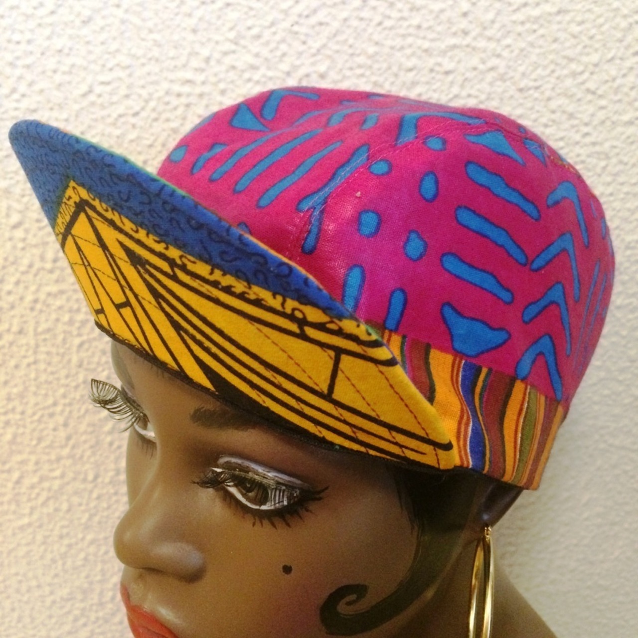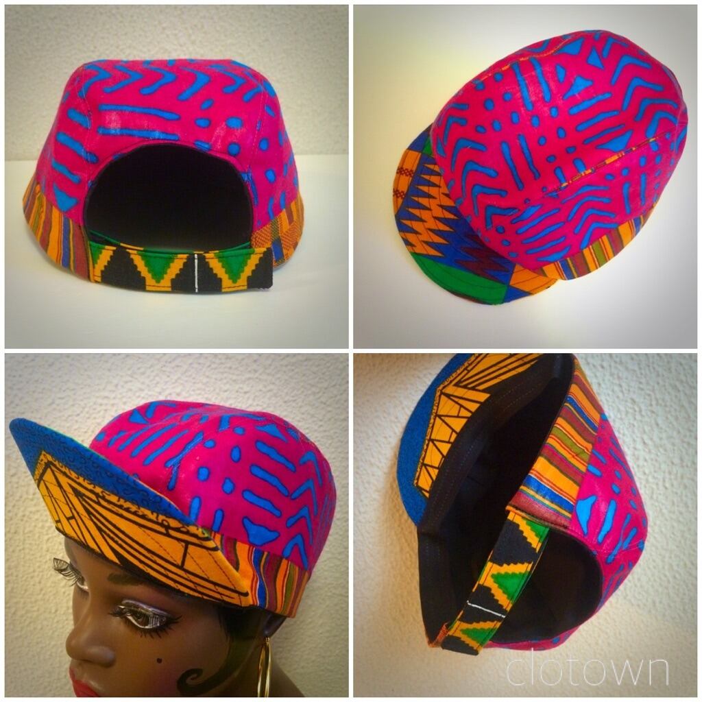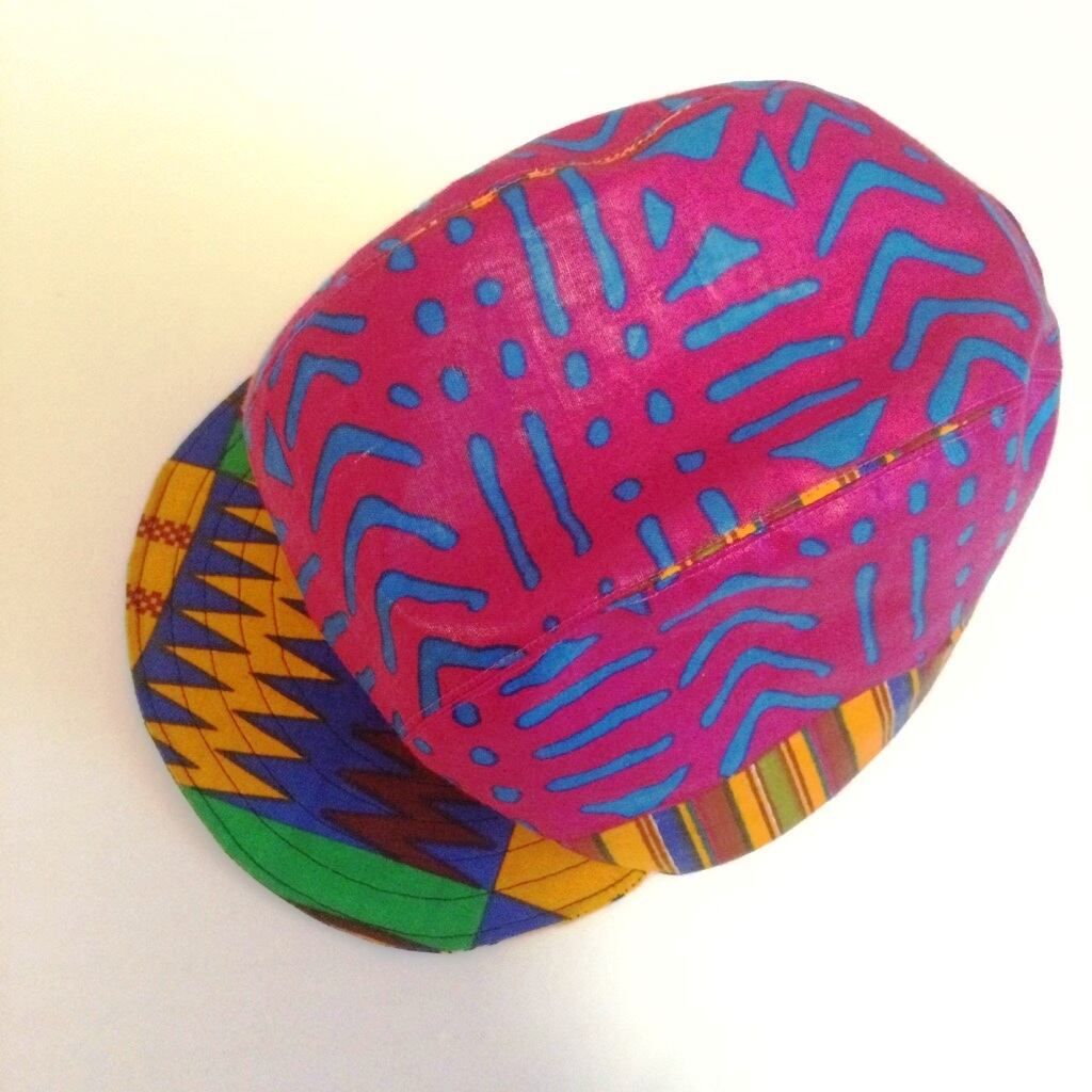 つばを上にあげてかぶるイメージでつくったキャップ。後ろはマジックテープです。