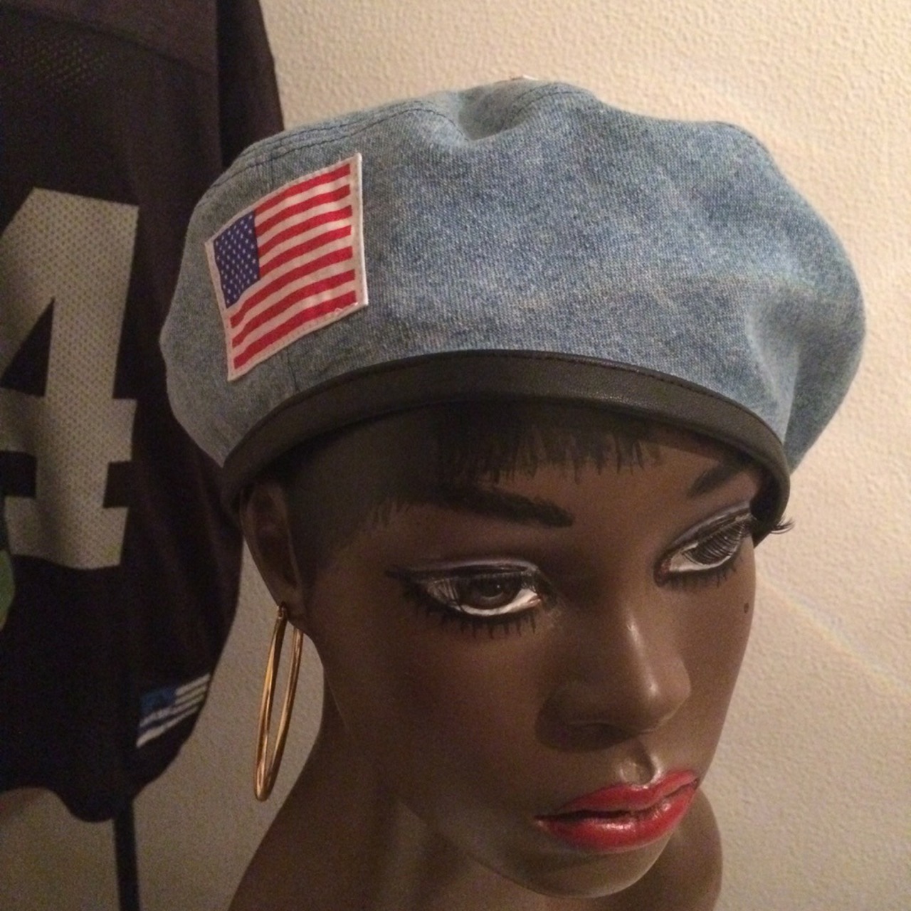反対は薄めカラーのデニムに国旗を縫いつけてあります。
