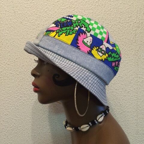 薄いカラーのデニムハット。