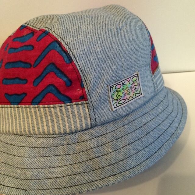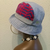 薄いカラーのデニムハット。