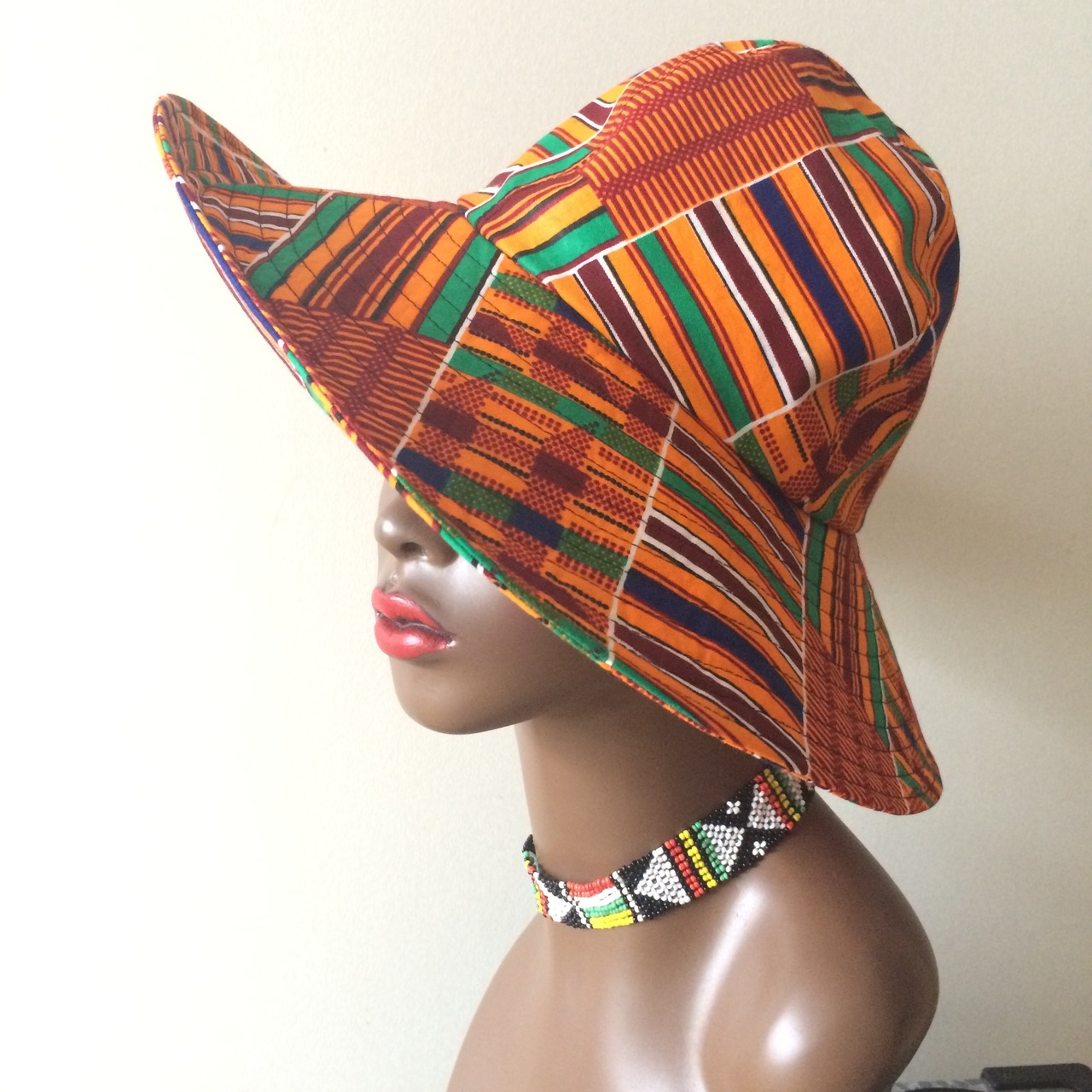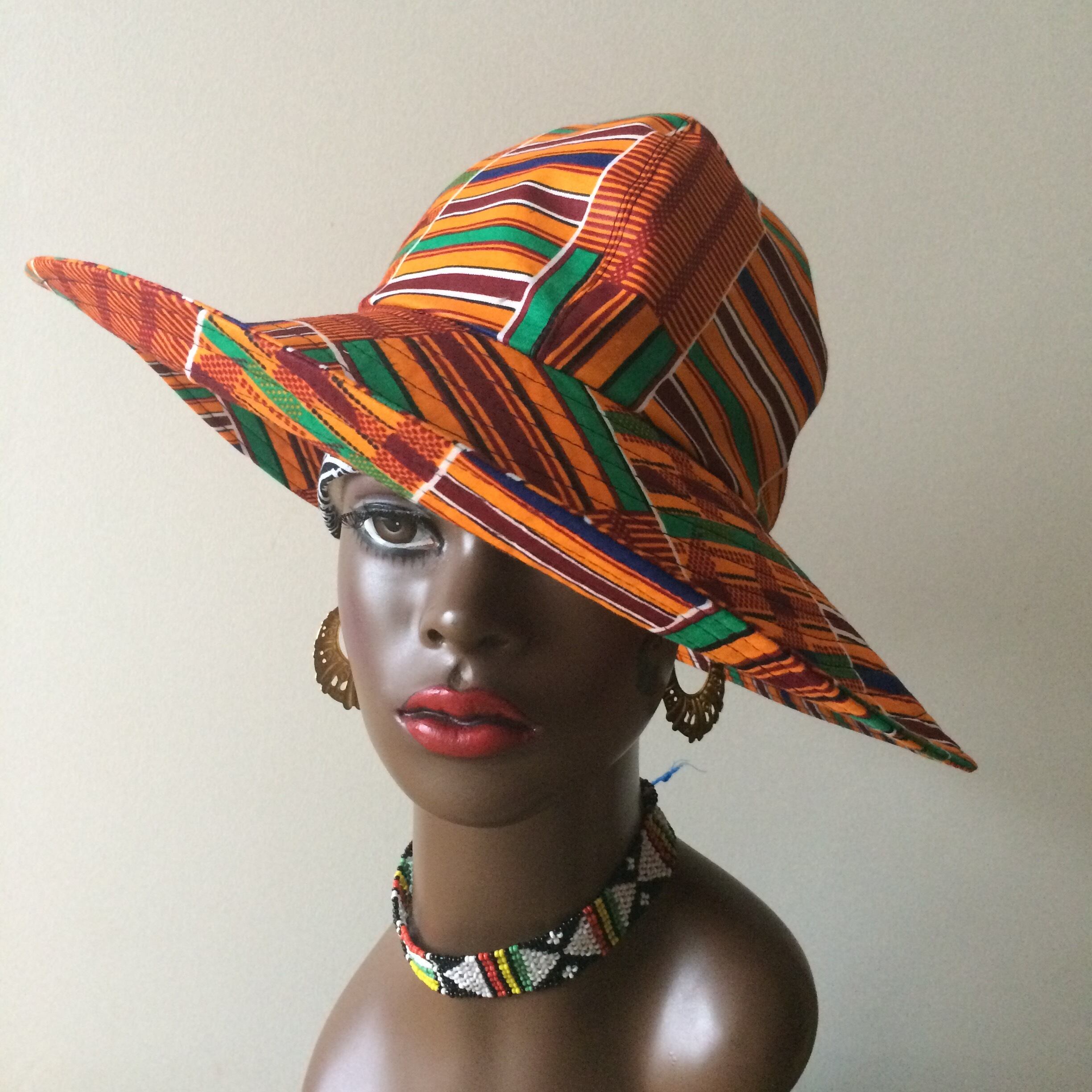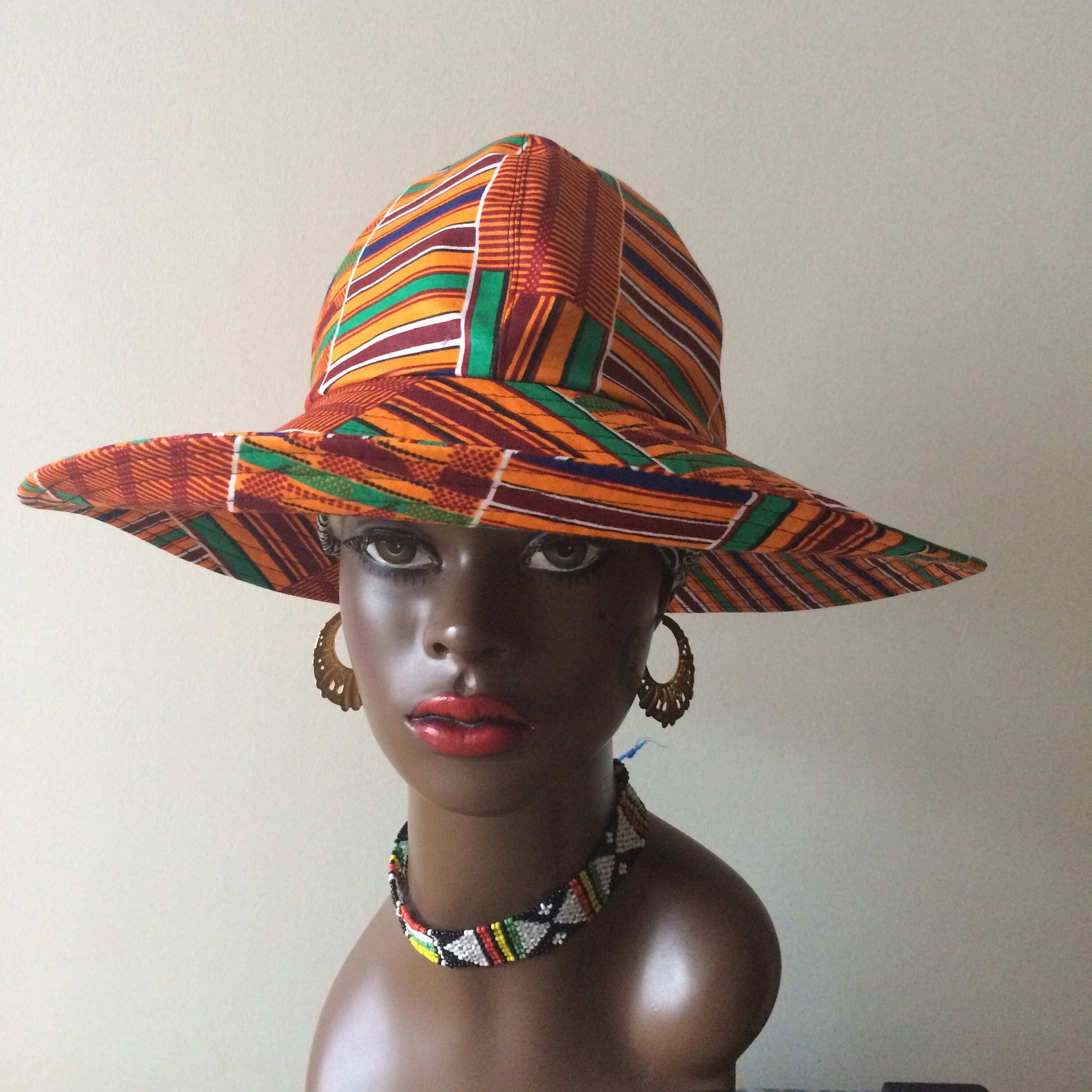 西アフリカ シエラレオネで購入したケンテプリントで作った帽子。