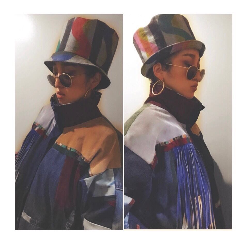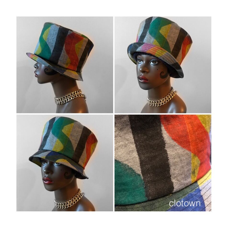 上に向かい少し広がったシルエットが、かぶるとまっすぐに見えます。ブリムはかなり短いデザイン。