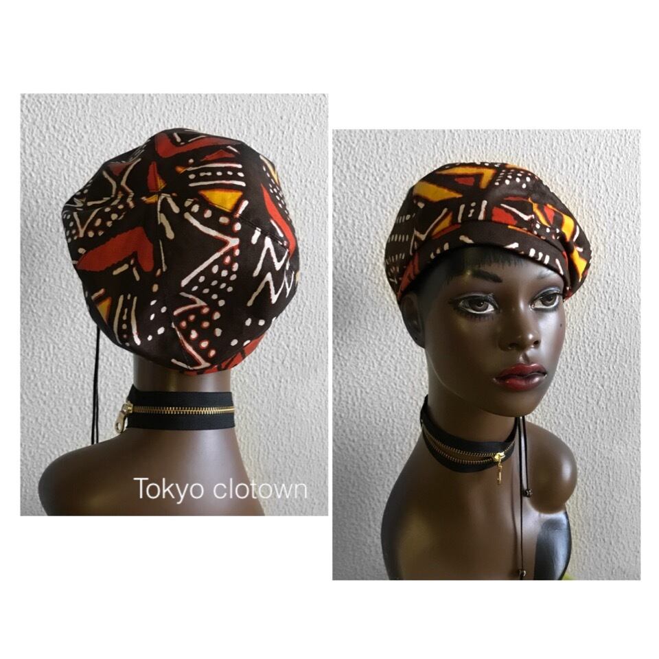 ガーナでプリントされた、少し厚みがある生地で作ったふんわり可愛いシルエットのベレー。