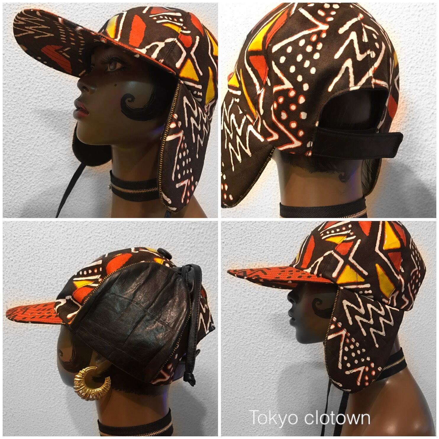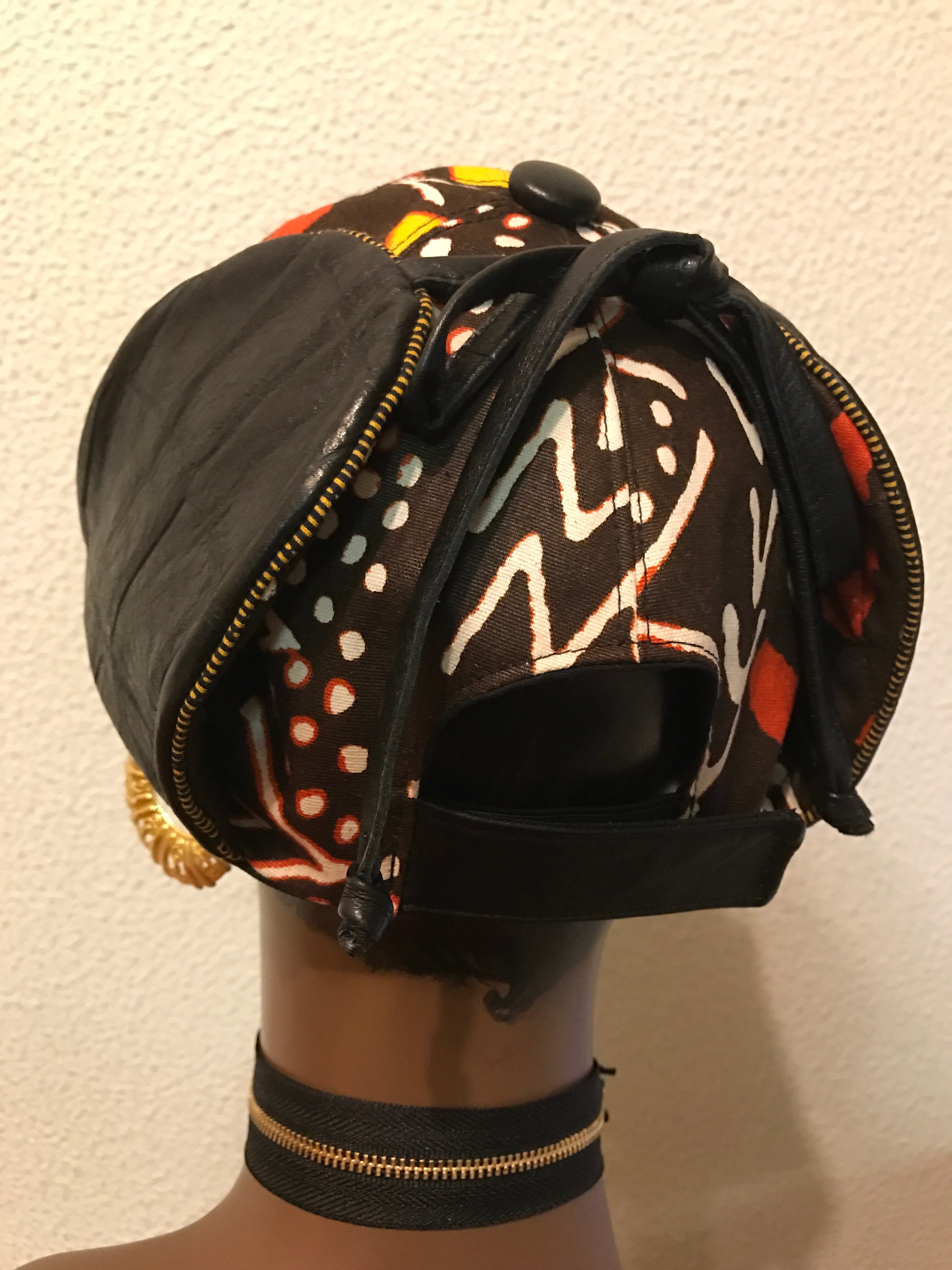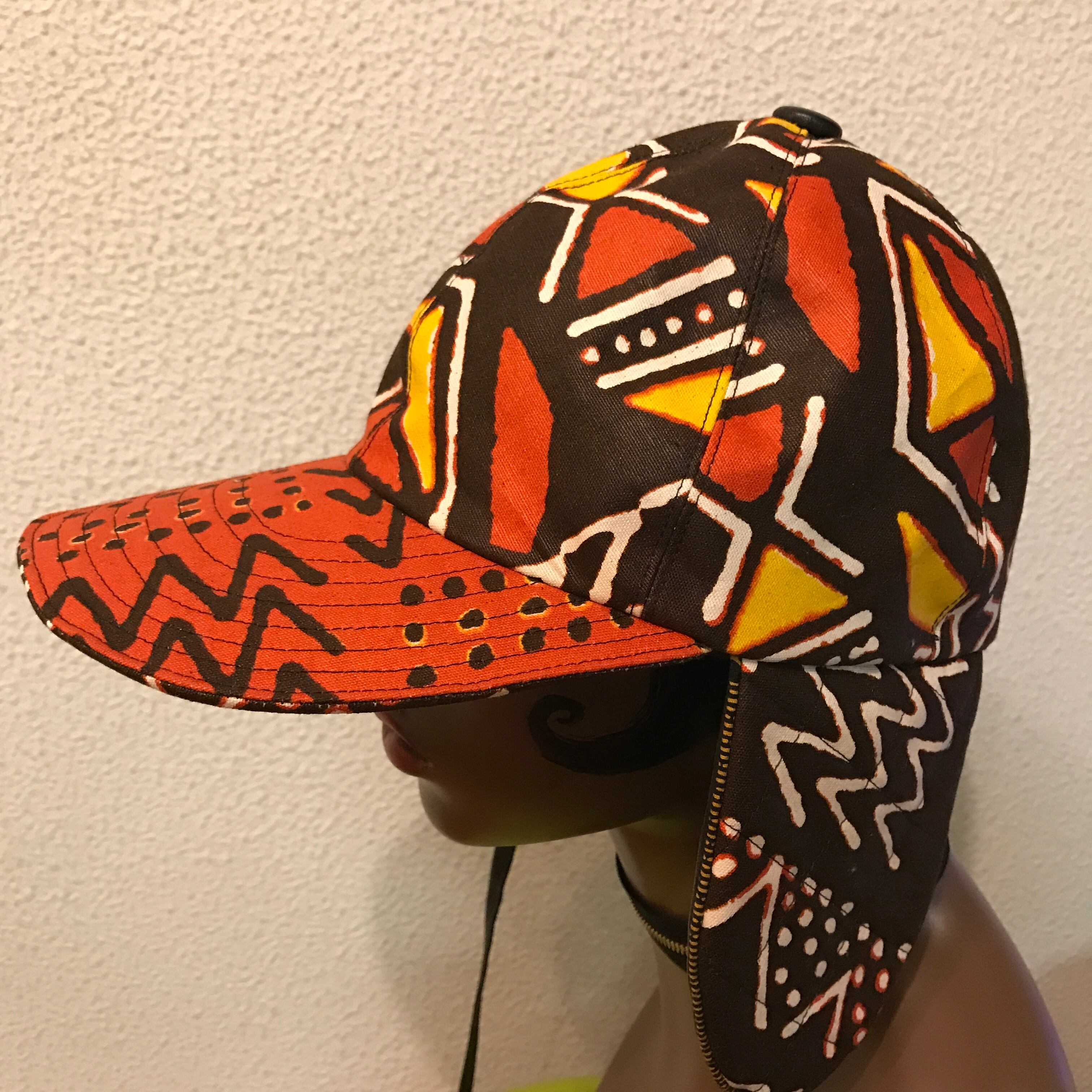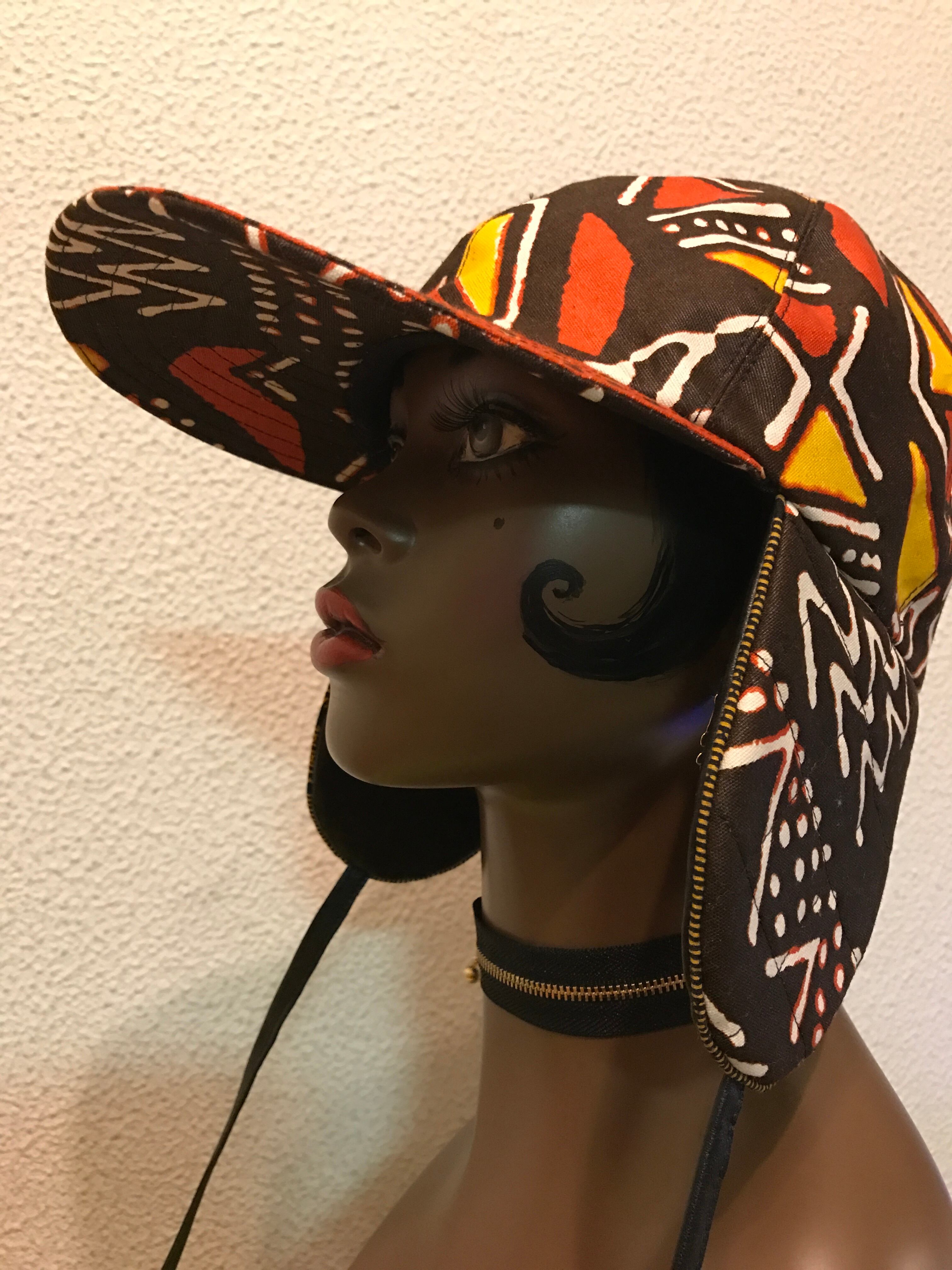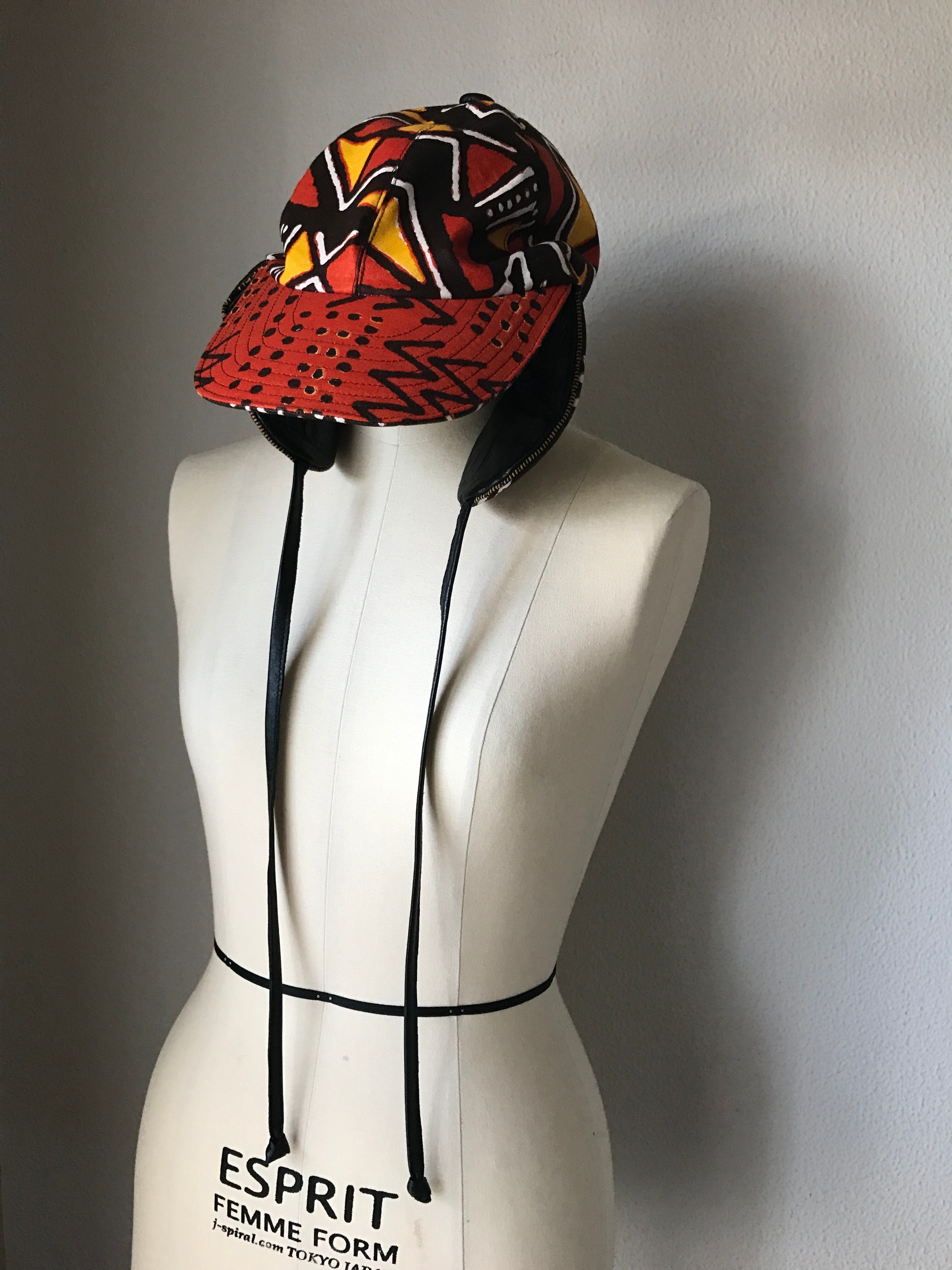 ガーナでプリントされた少し厚みのある生地で作ったキャップ。