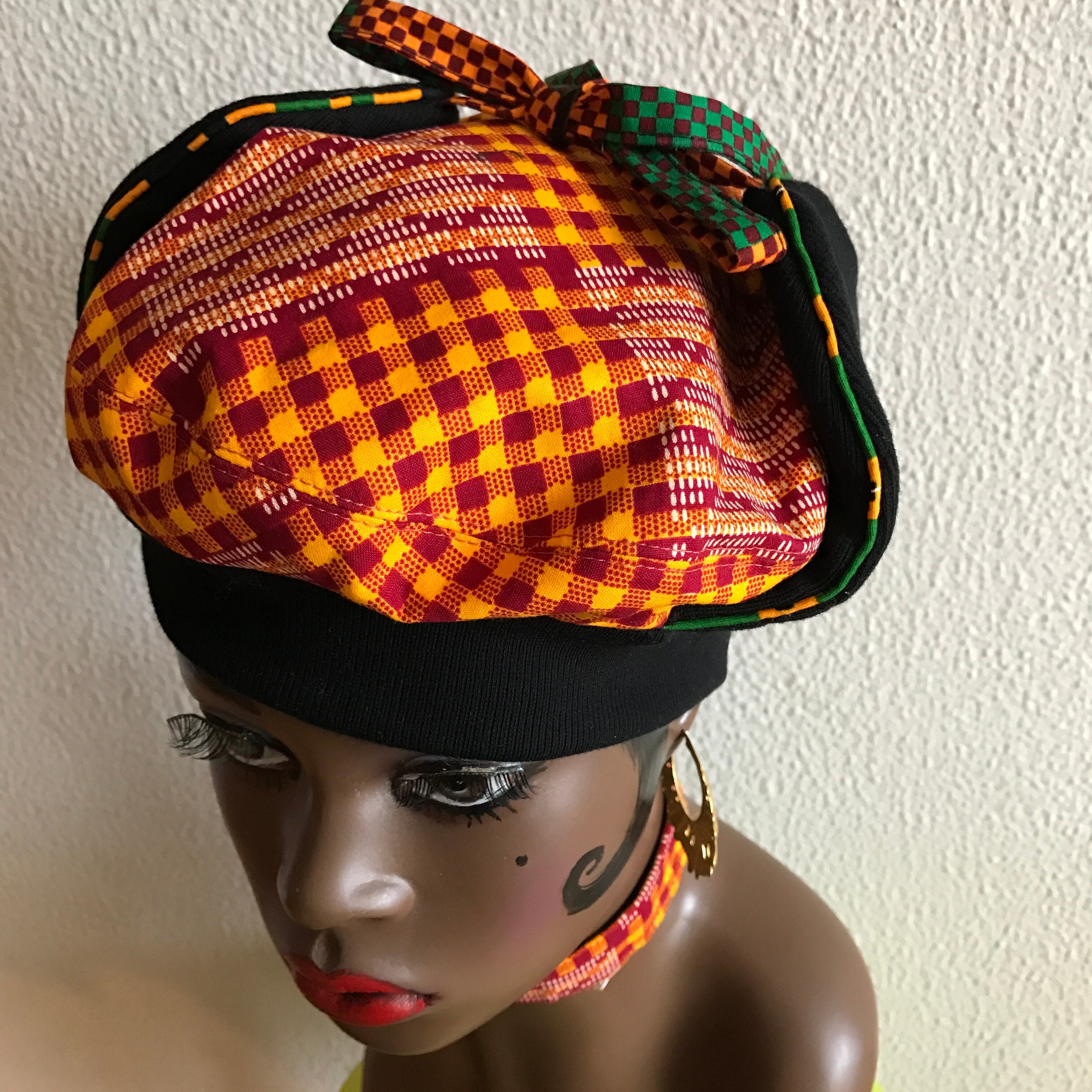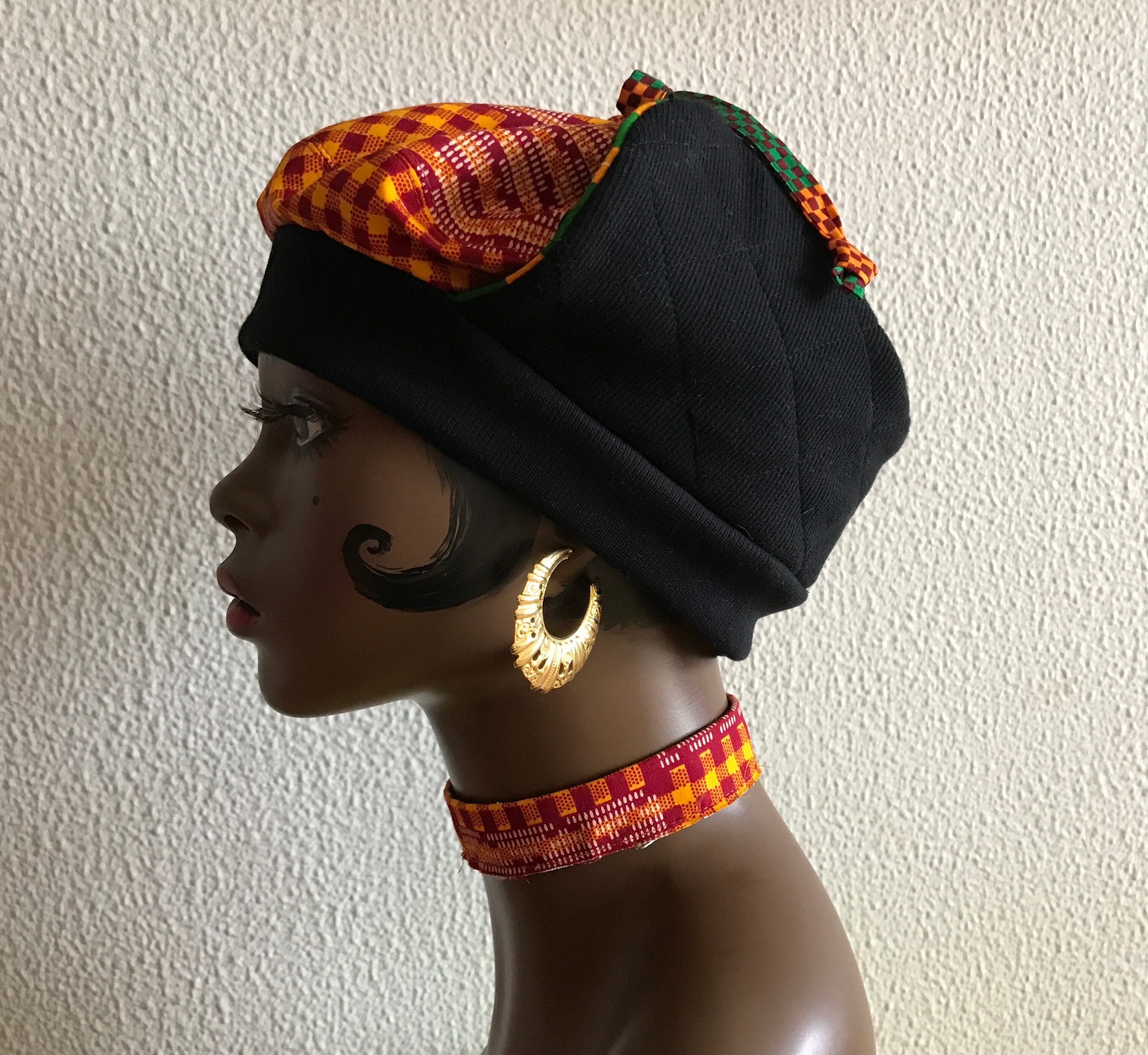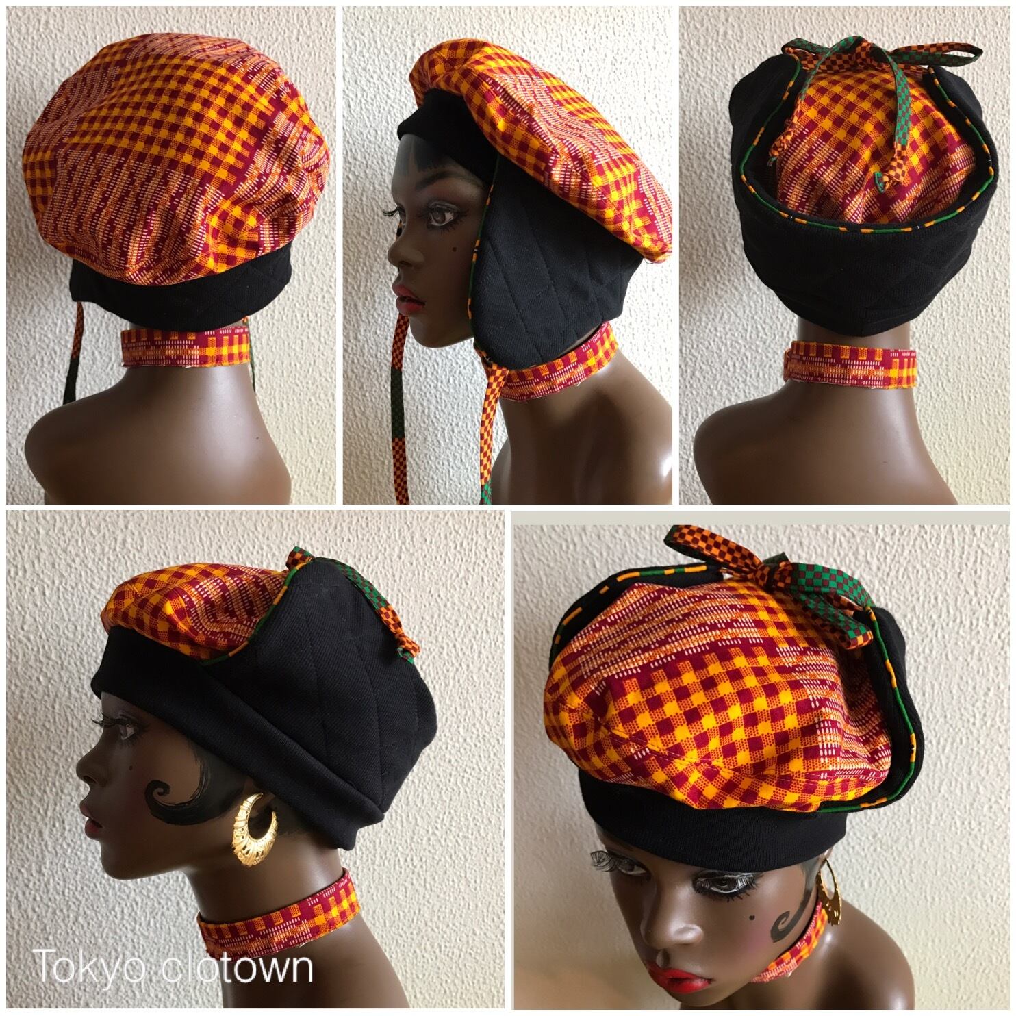 コロンとした丸いシルエットがかわいい アフリカンプリントとリブニット素材のベレー。
