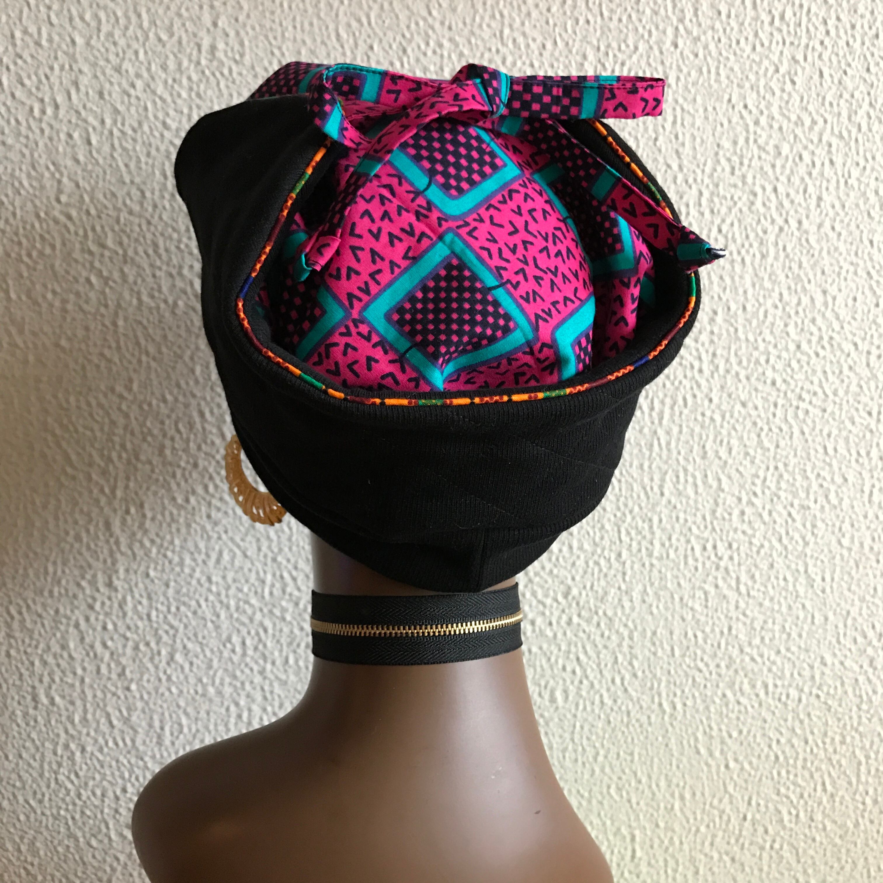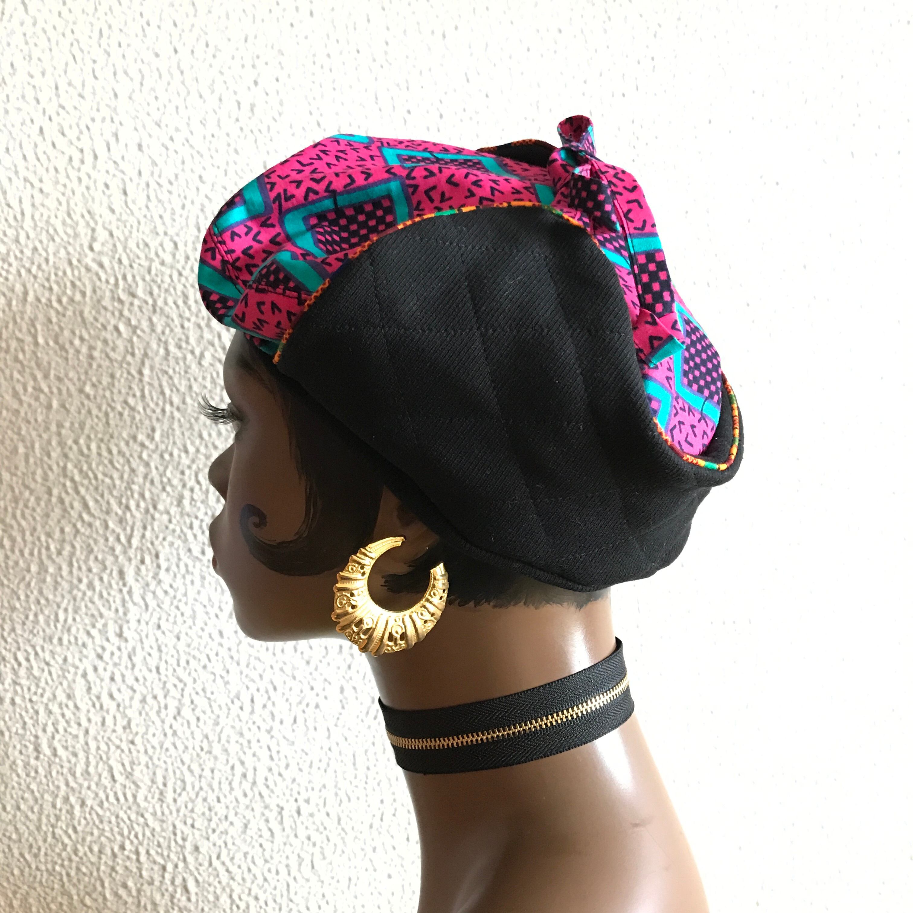コロンとした丸いシルエットがかわいい アフリカンプリントとリブニット素材のベレー。
