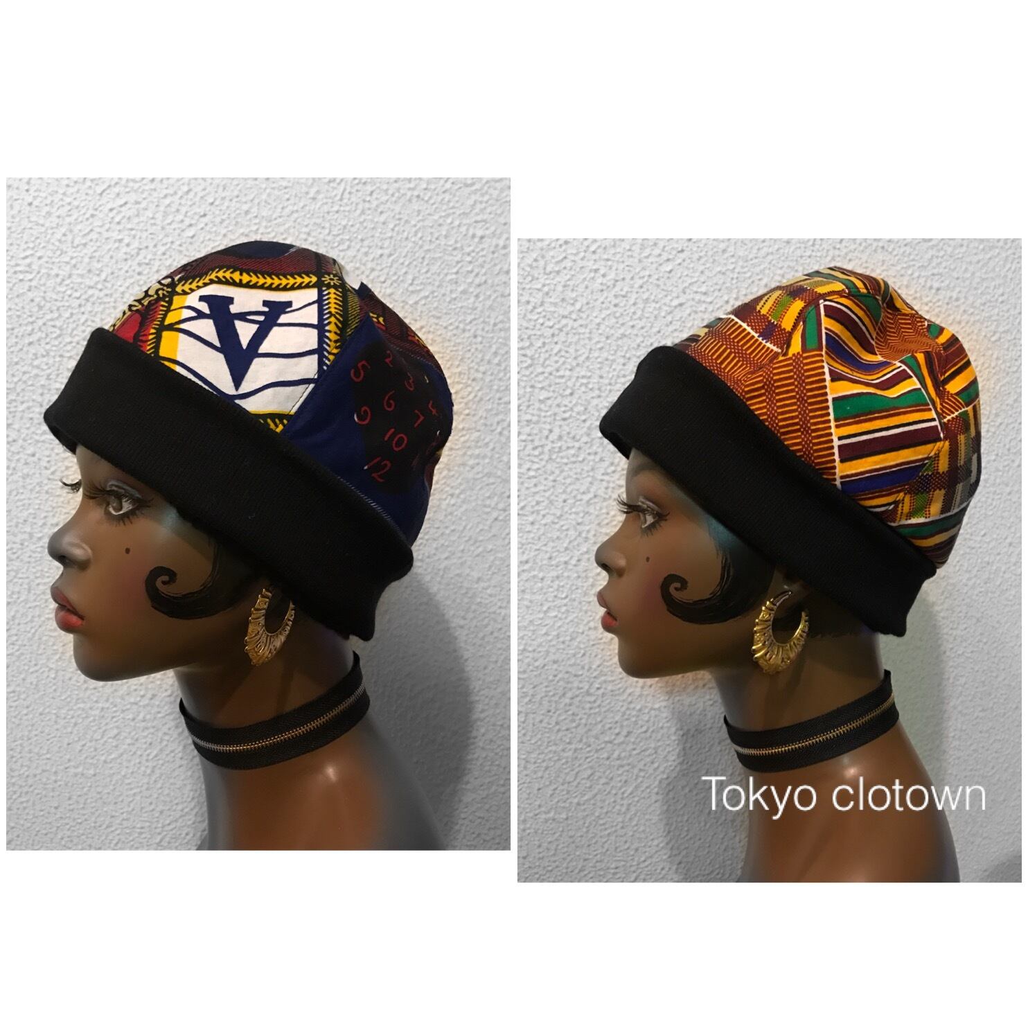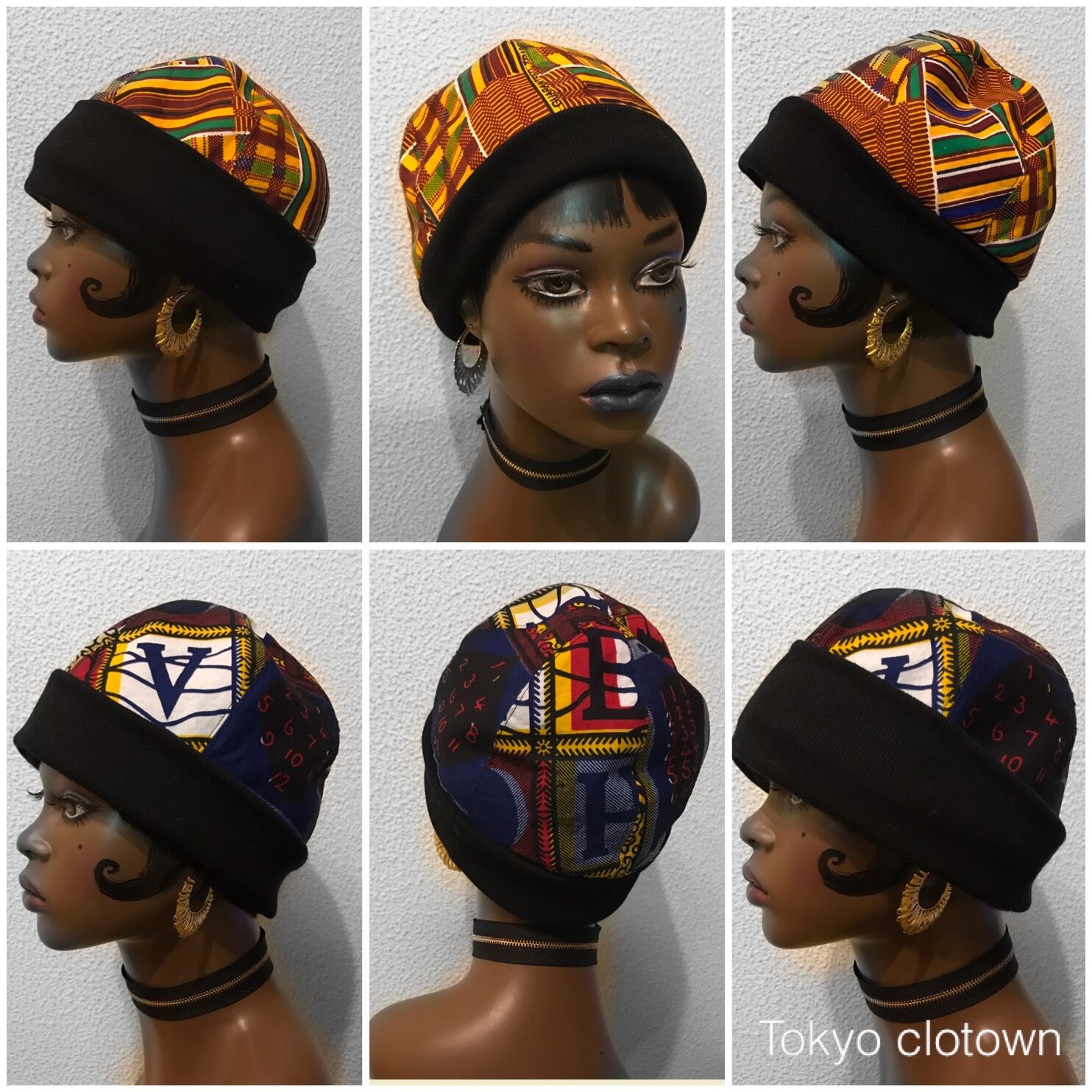 アフリカらしい2柄で作ったリバーシブルビーニー。