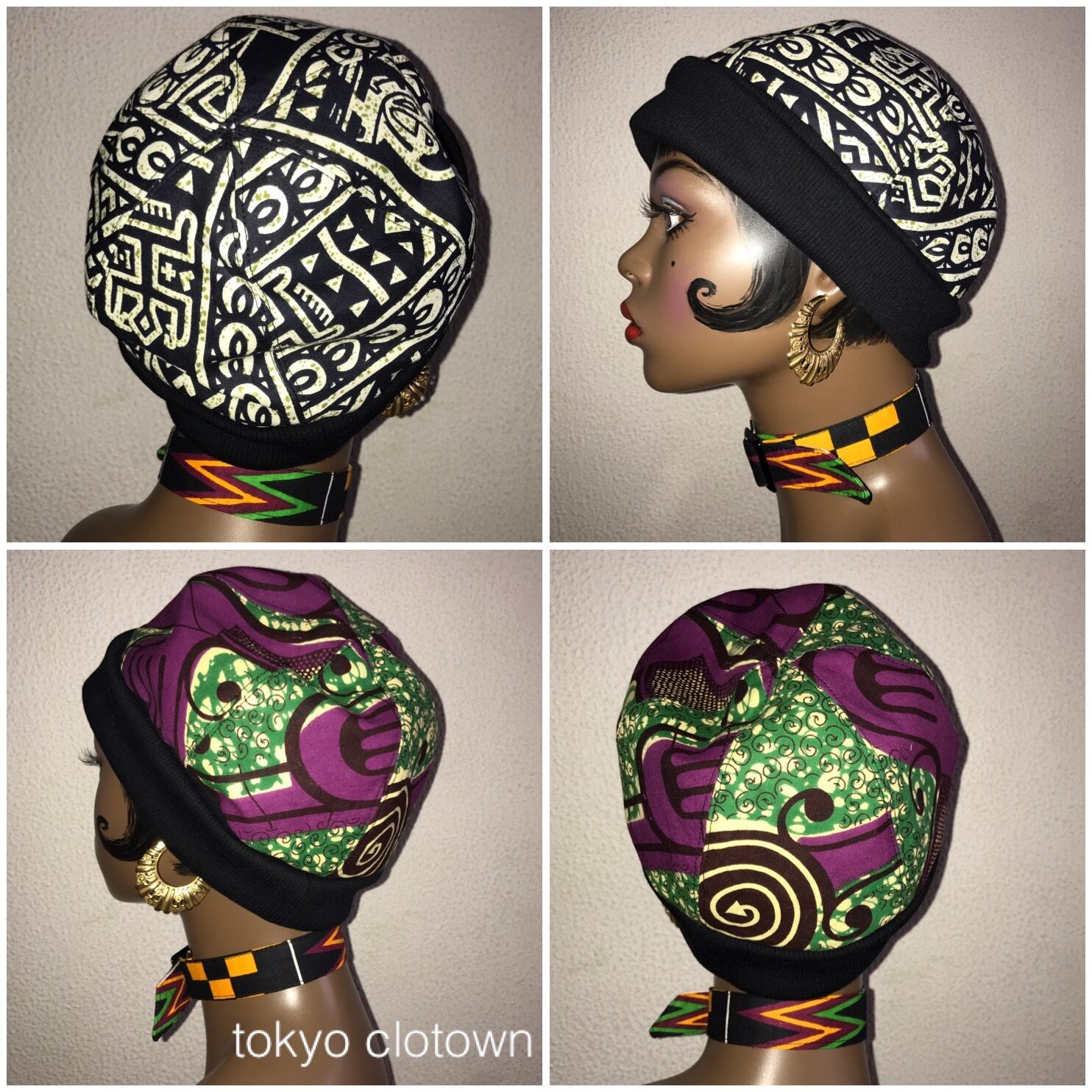 アフリカらしい2柄で作ったリバーシブルビーニー。