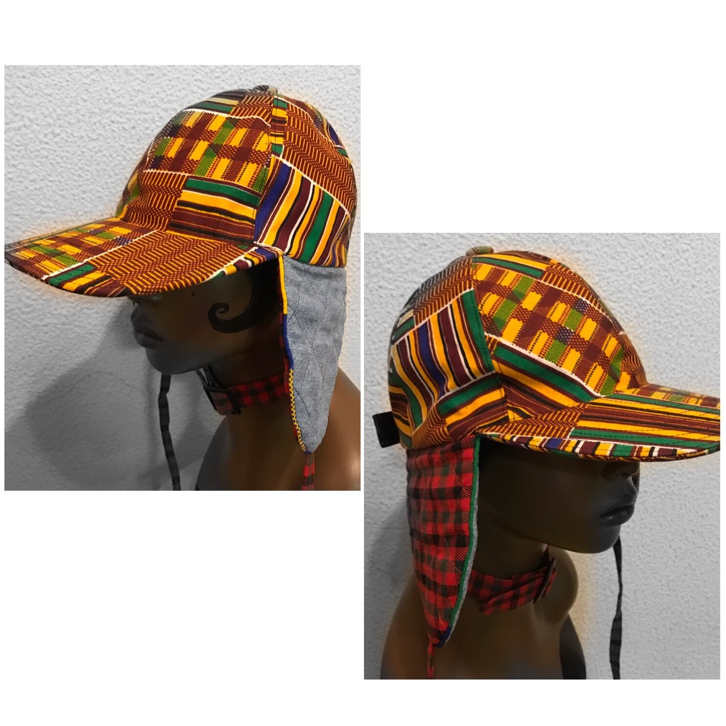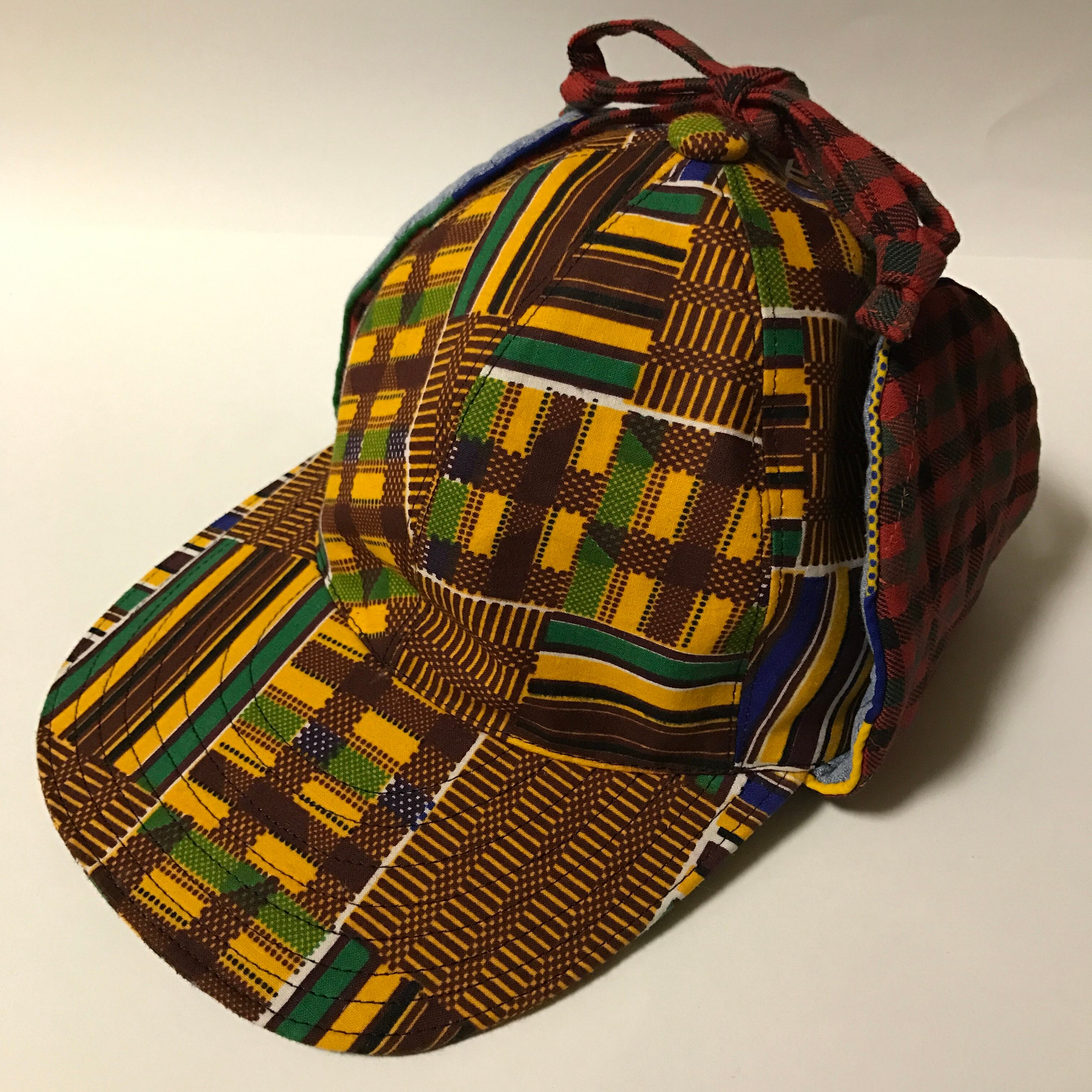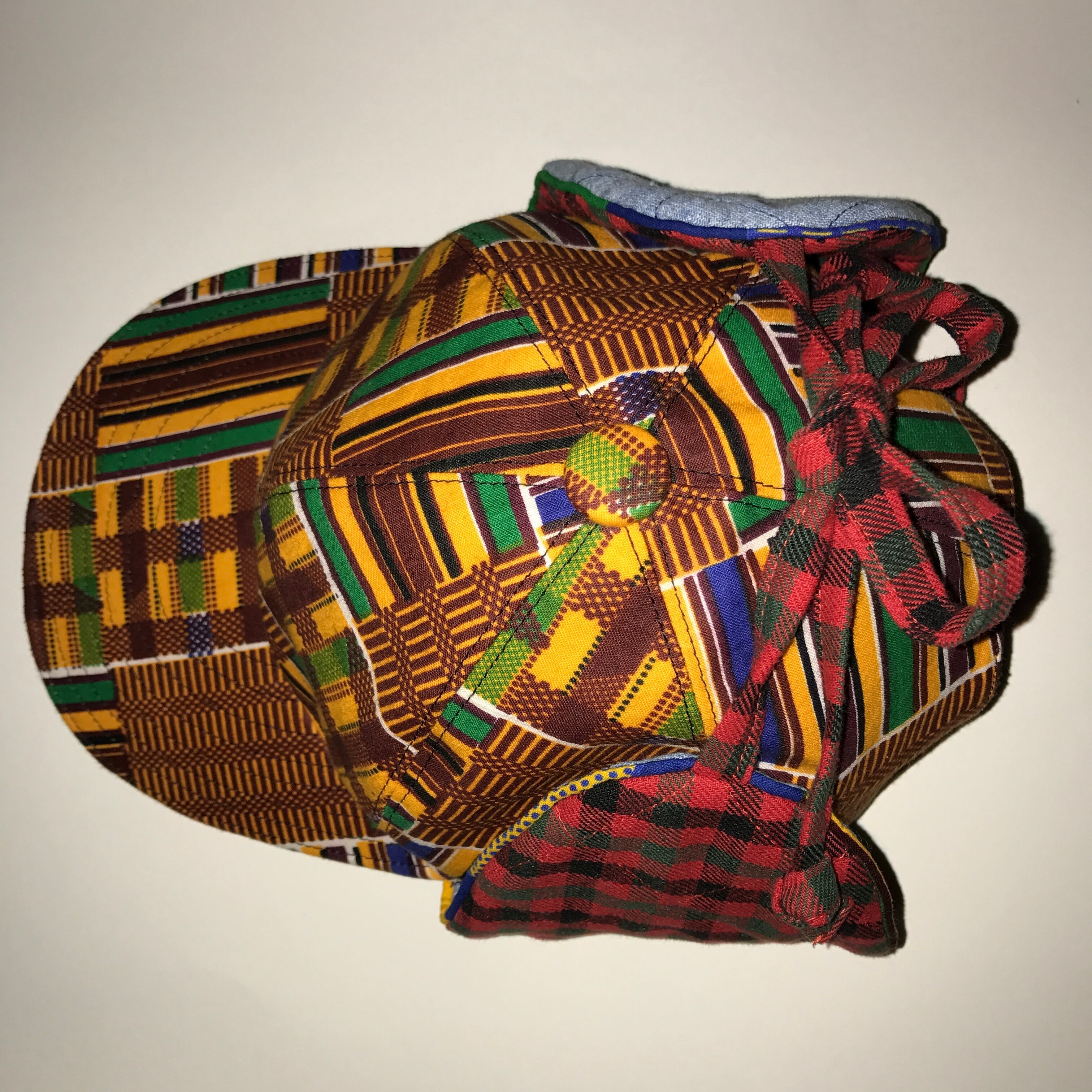 ケンテプリント布とコットンのでチェック柄の組み合わせ。