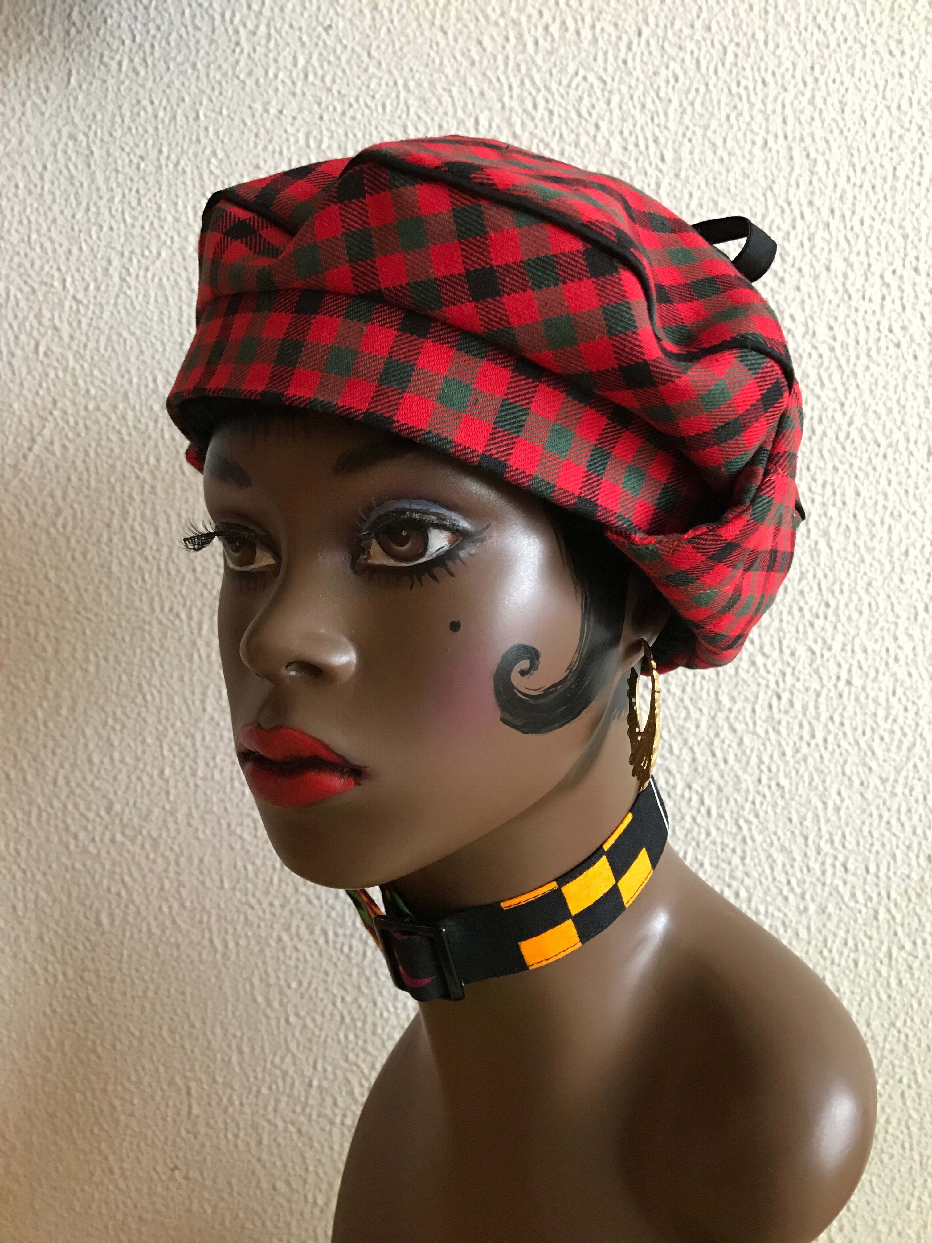 チェック生地にブラックの紐を合わせてメリハリをプラスしてます。