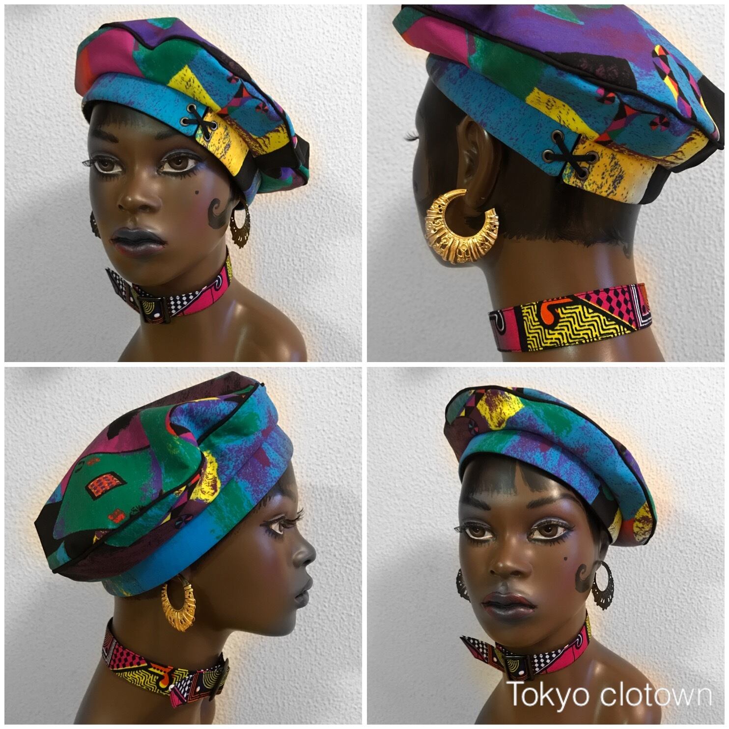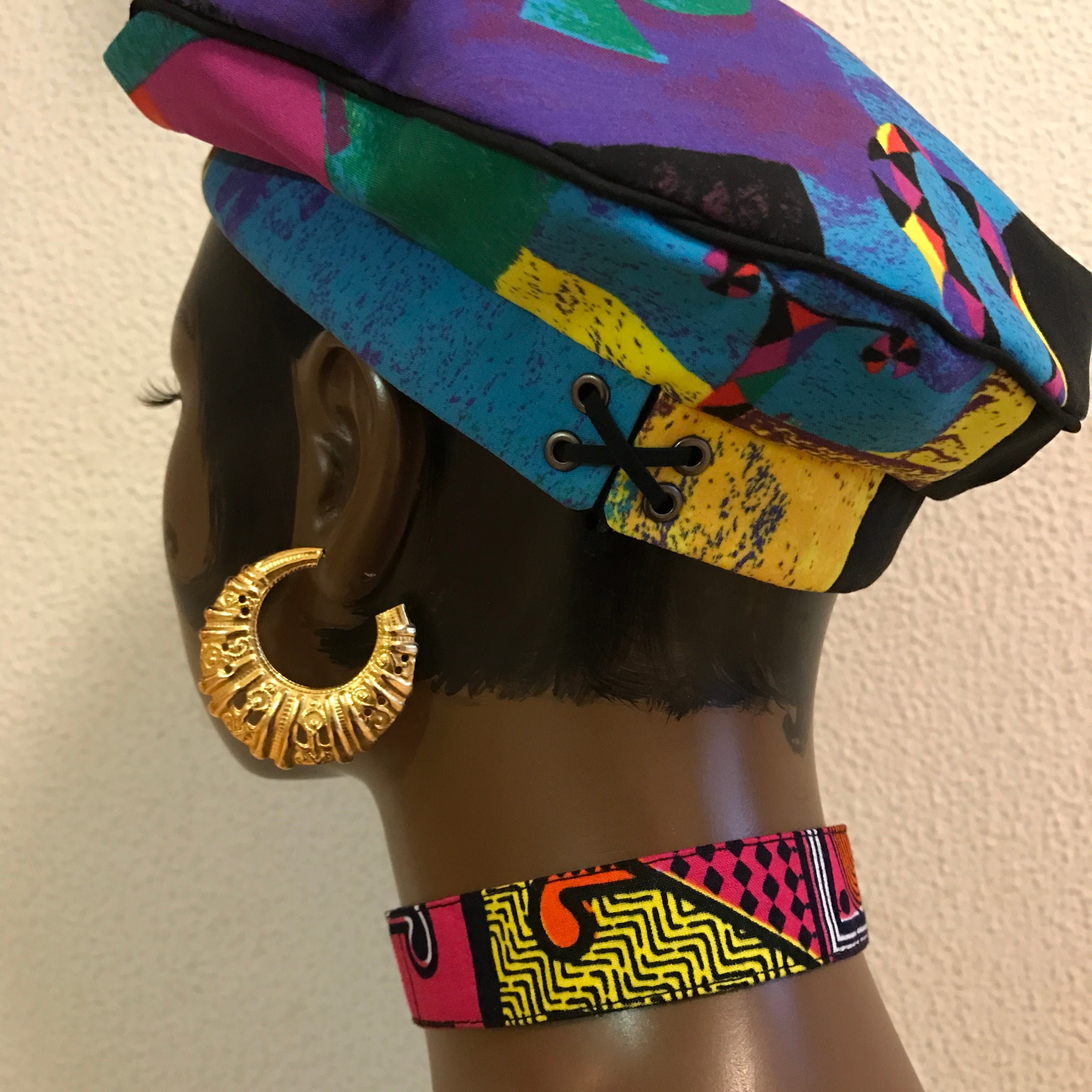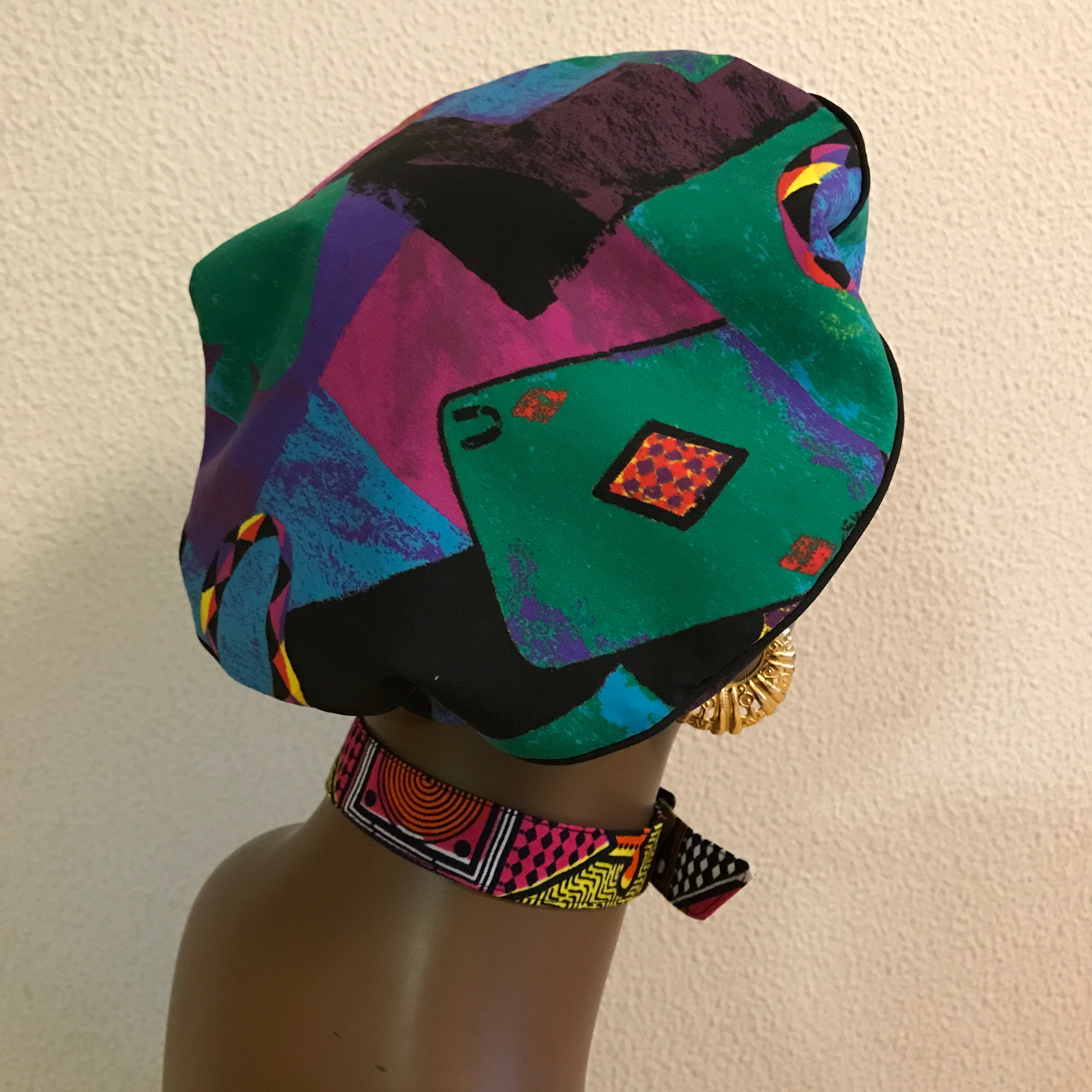 80-90年代ファッションがお好きな方にオススメなレトロな生地で作ったベレー帽。