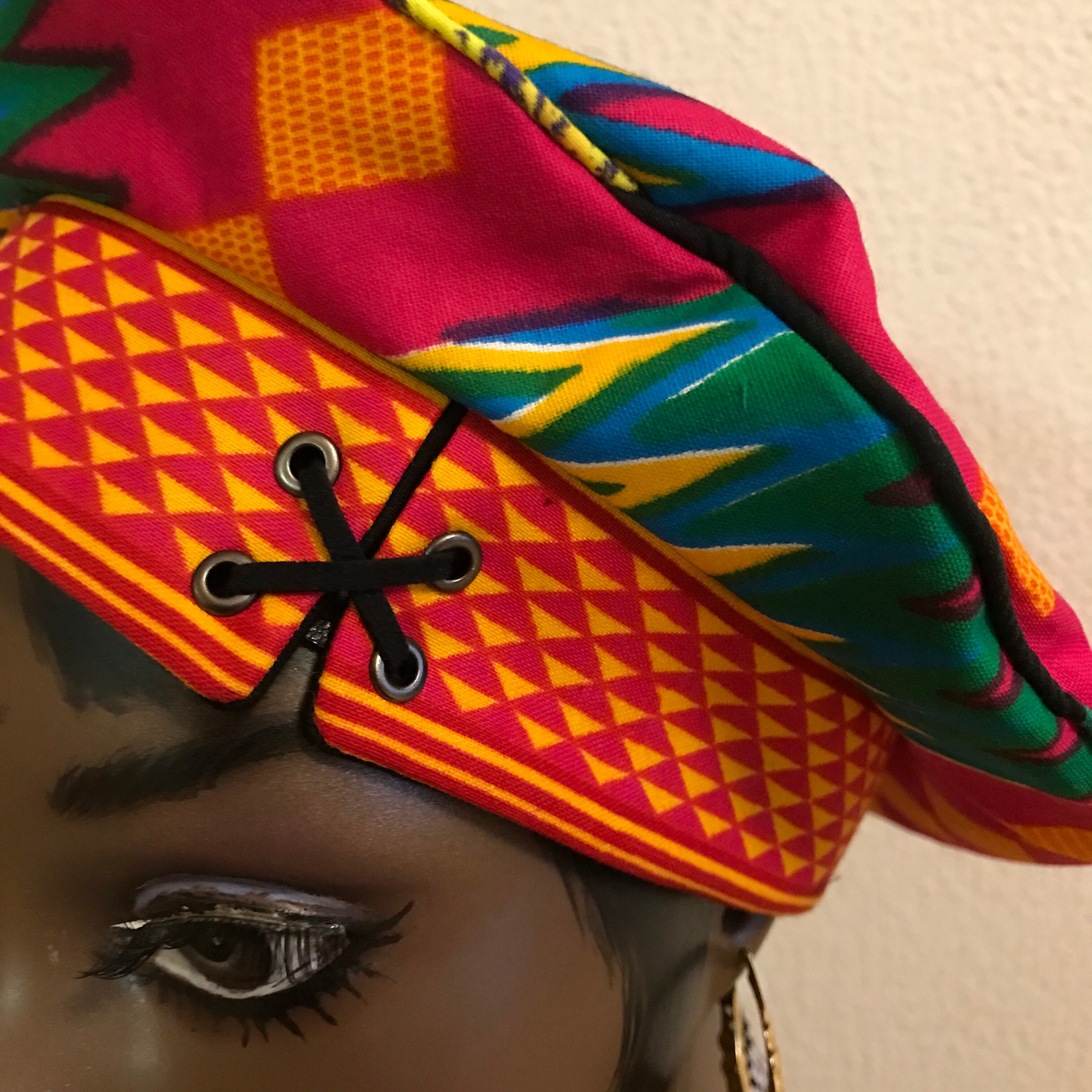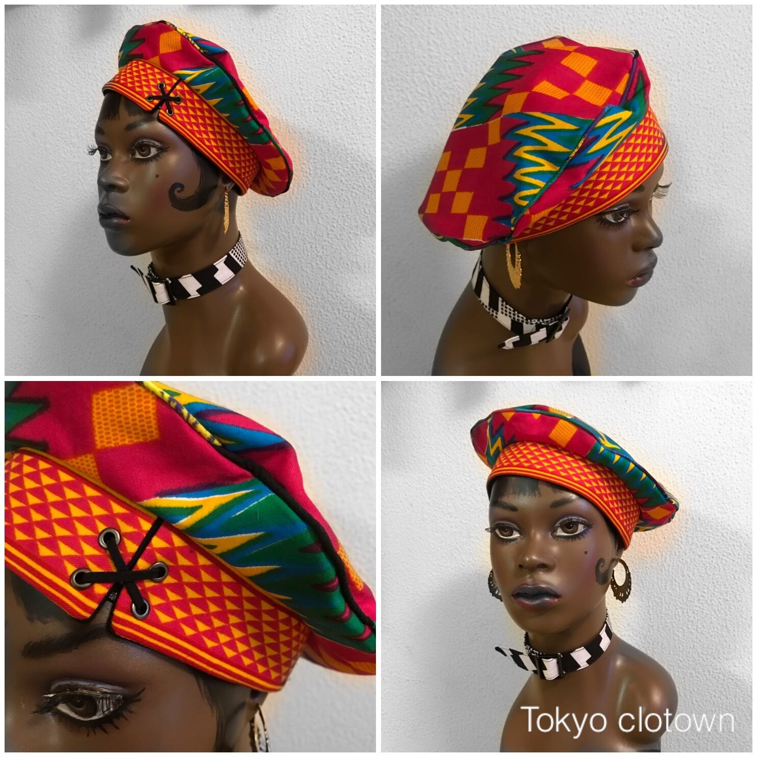 80-90年代ファッションがお好きな方にオススメなレトロな生地で作ったベレー帽。