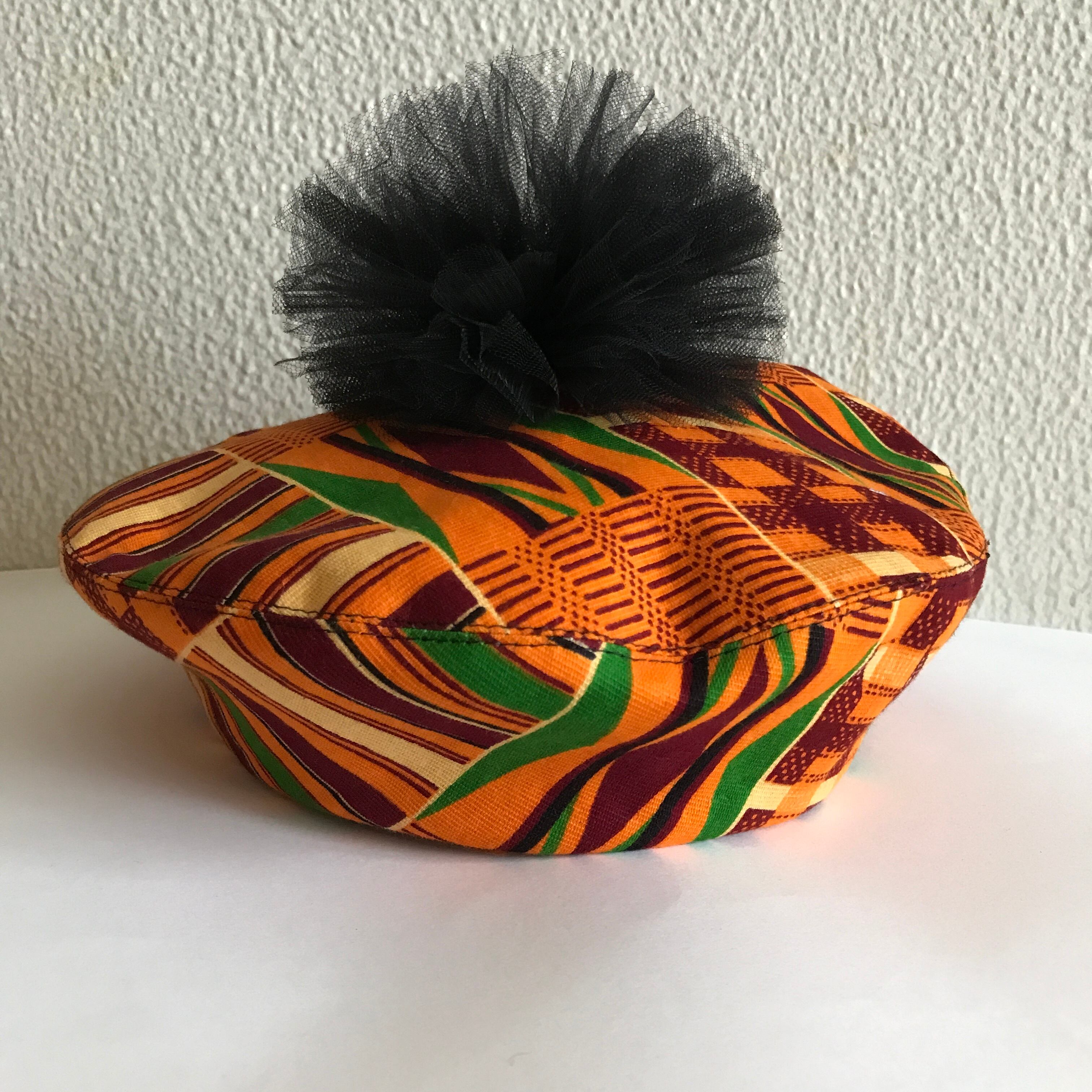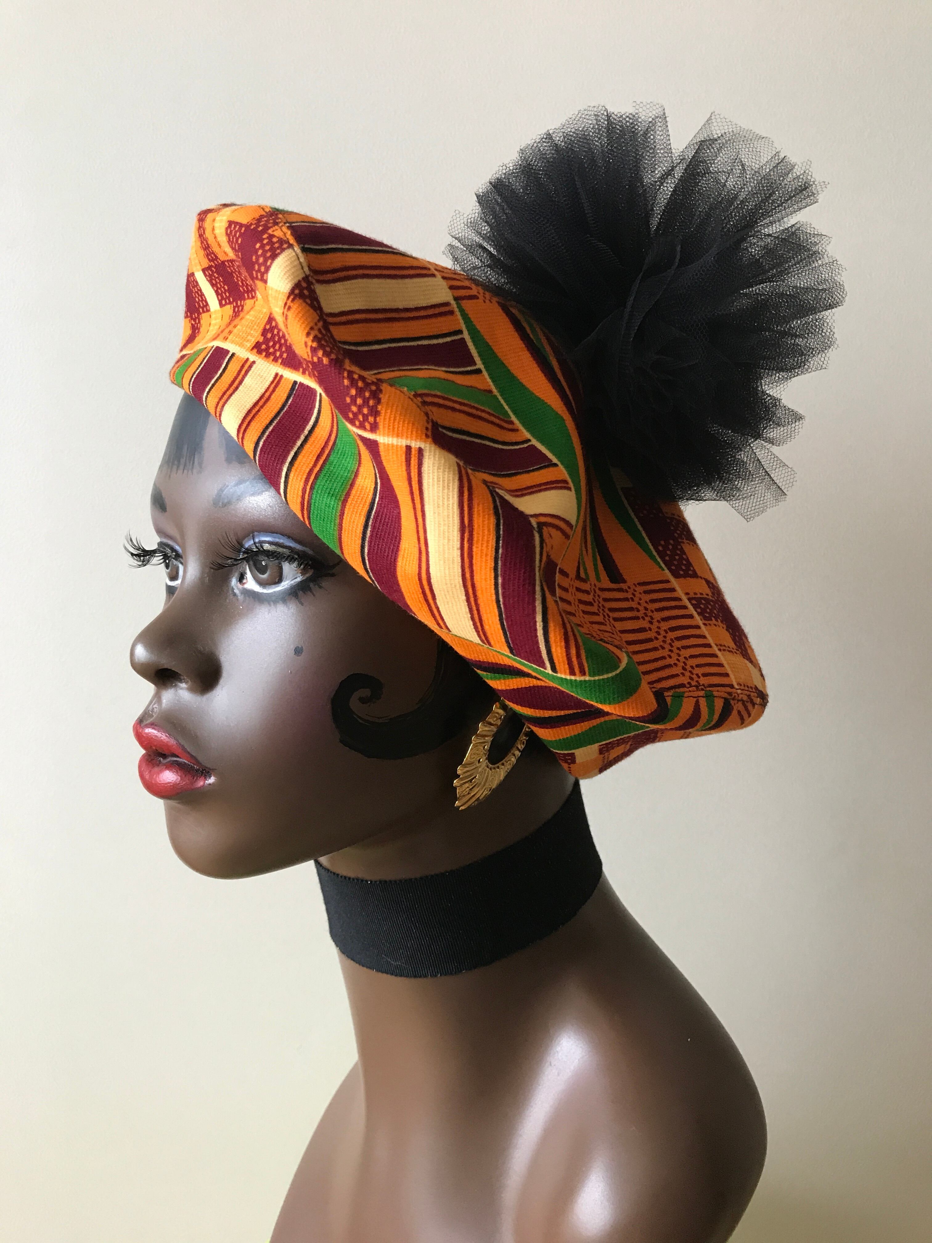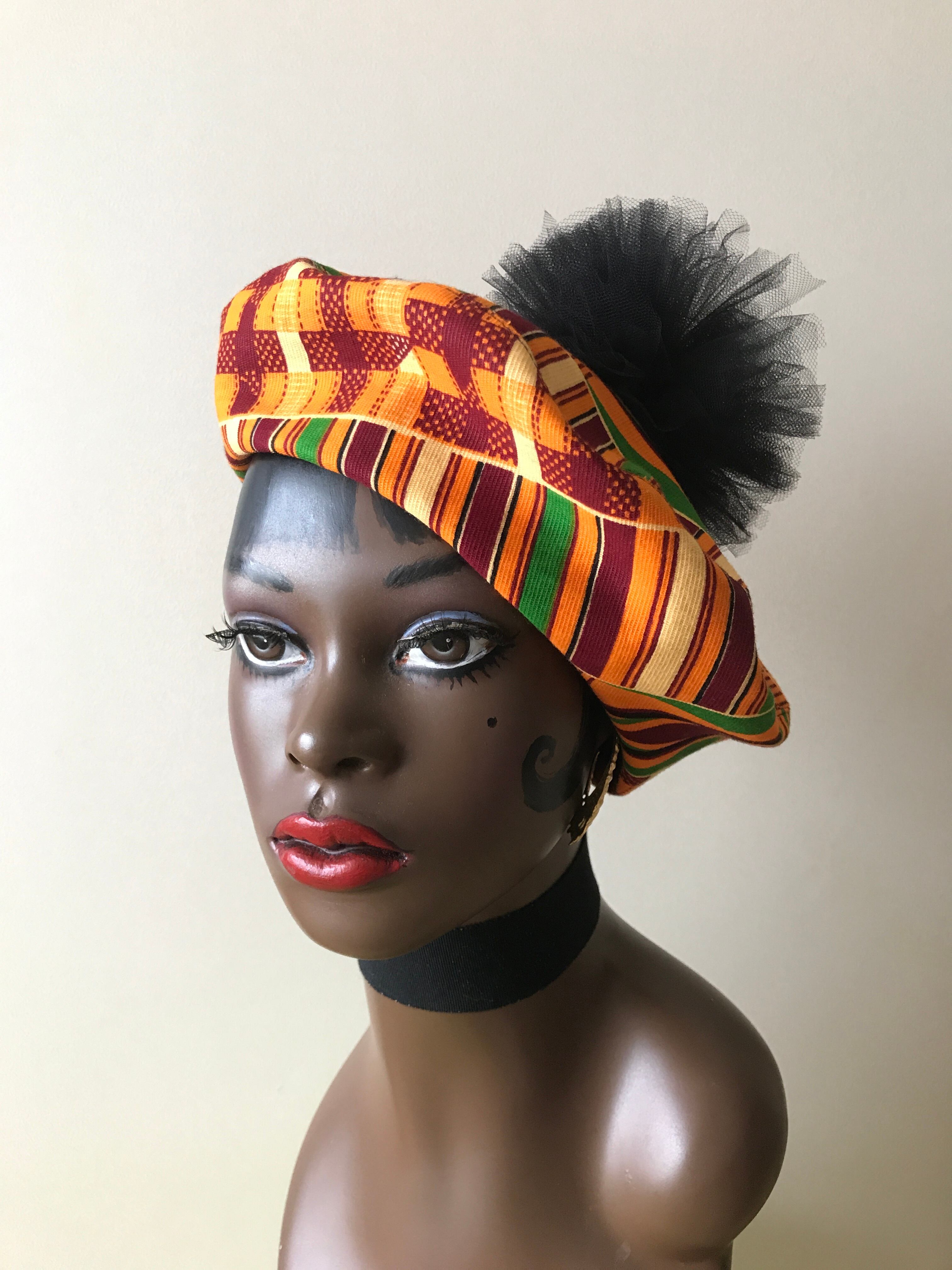 鮮やかなブルーとオレンジが顔周りをはっきりさせ てくれます。シンプルなお洋服に合わせてもいいし、アフリカンプリントに合わせてもお洒落。