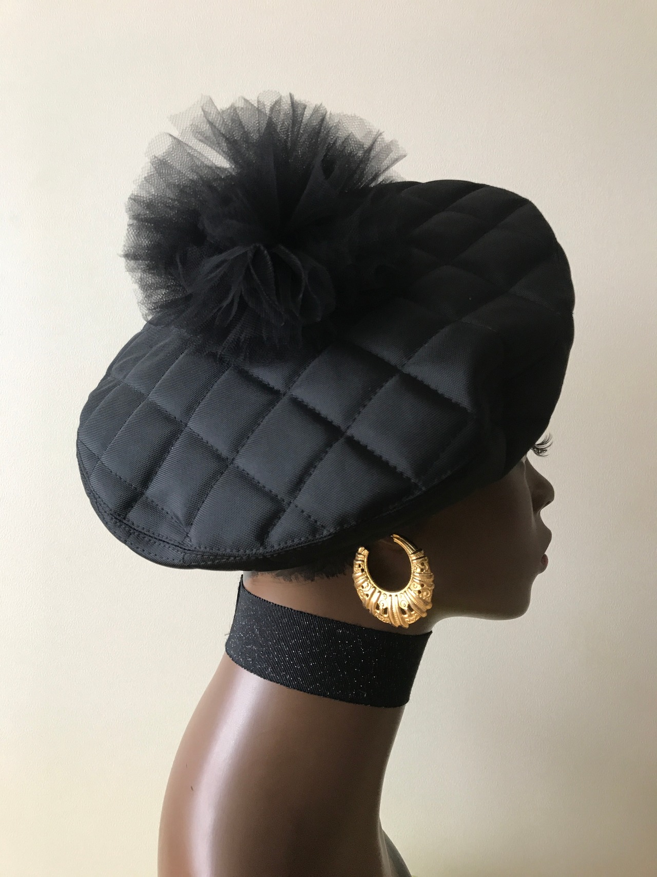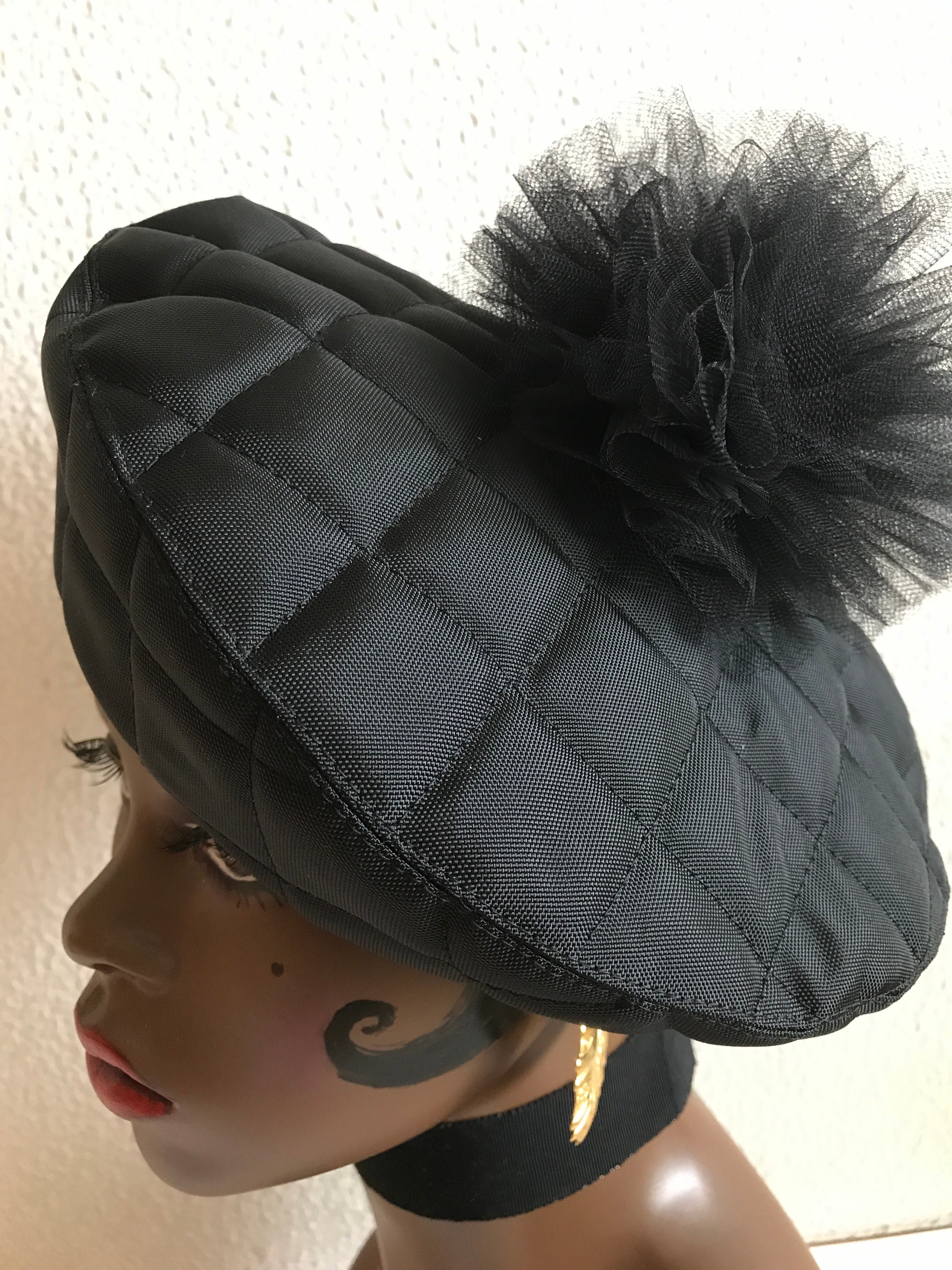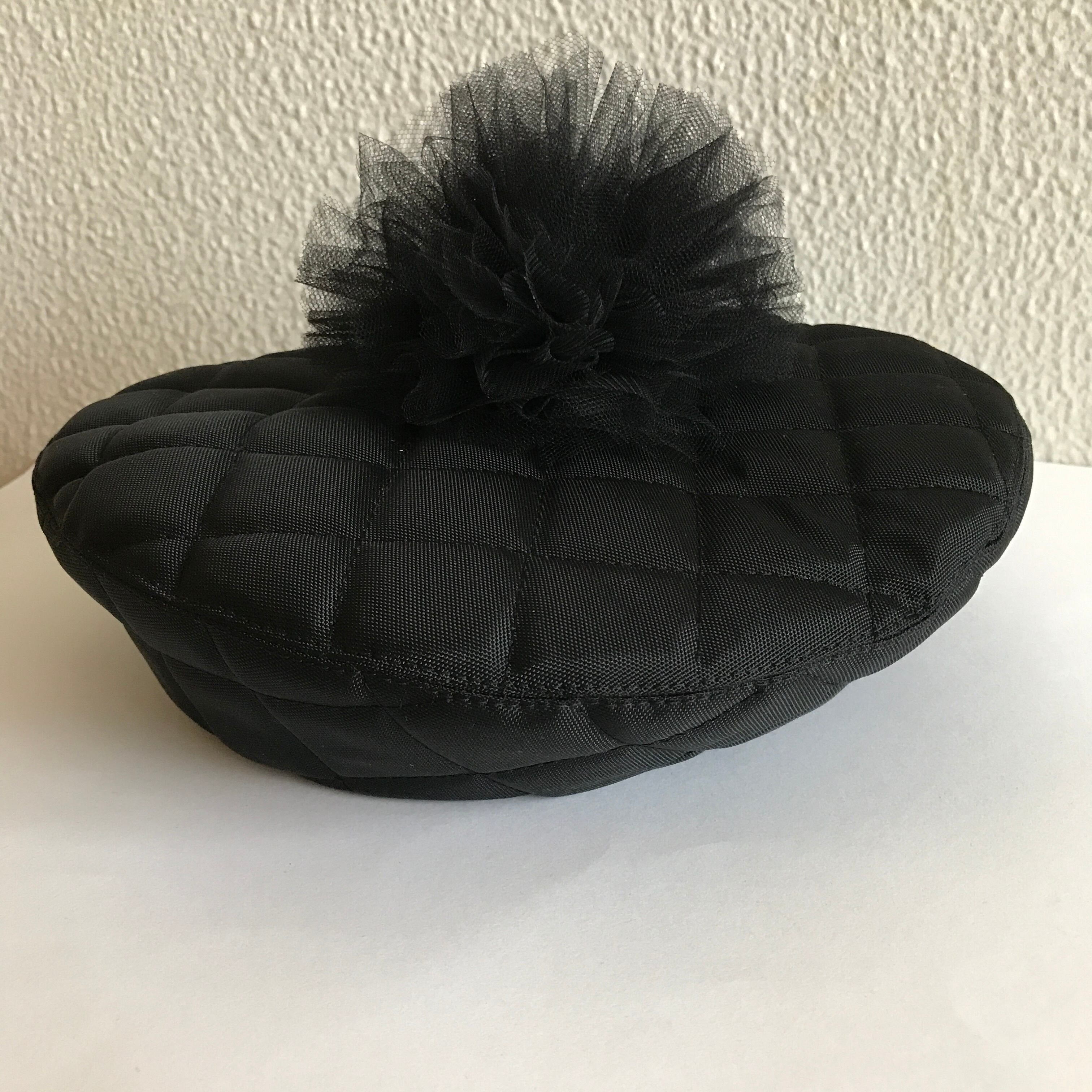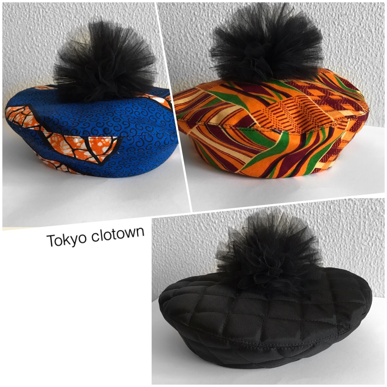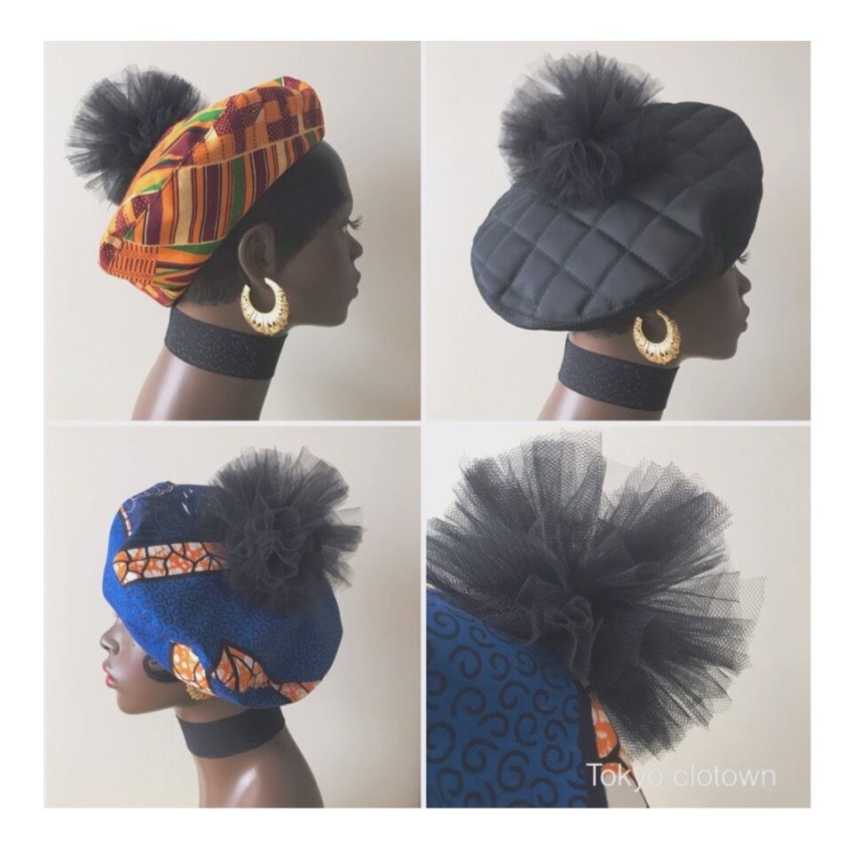 シンプルなシルエットにチュール素材のポンポンがポイントになったベレー帽。