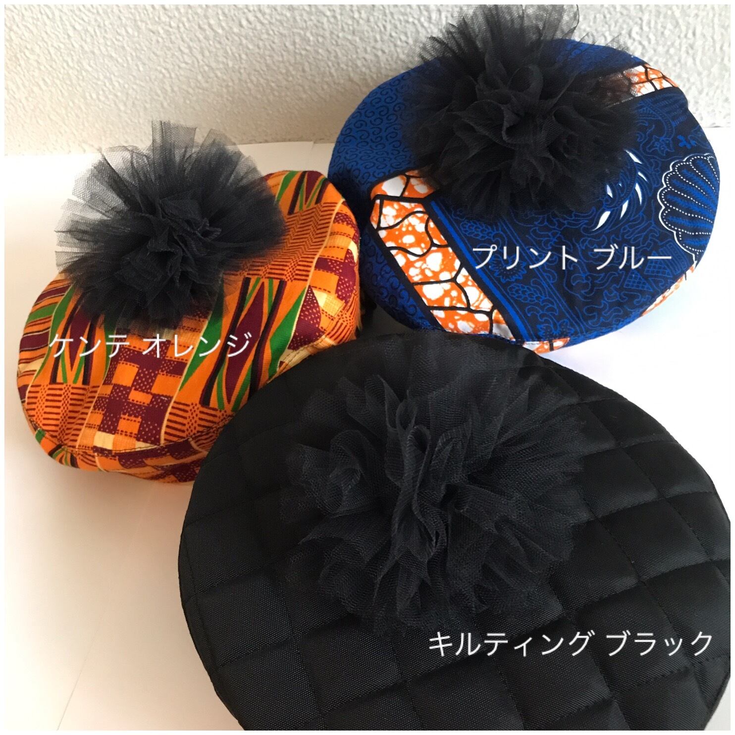 ナイロンのキルティング素材にチュールのコンビ。カジュアルにもちょっとおめかしDAYにも使いやすいです。アフリカンプリント生地より厚みがあるので、形がくっきりしてます。