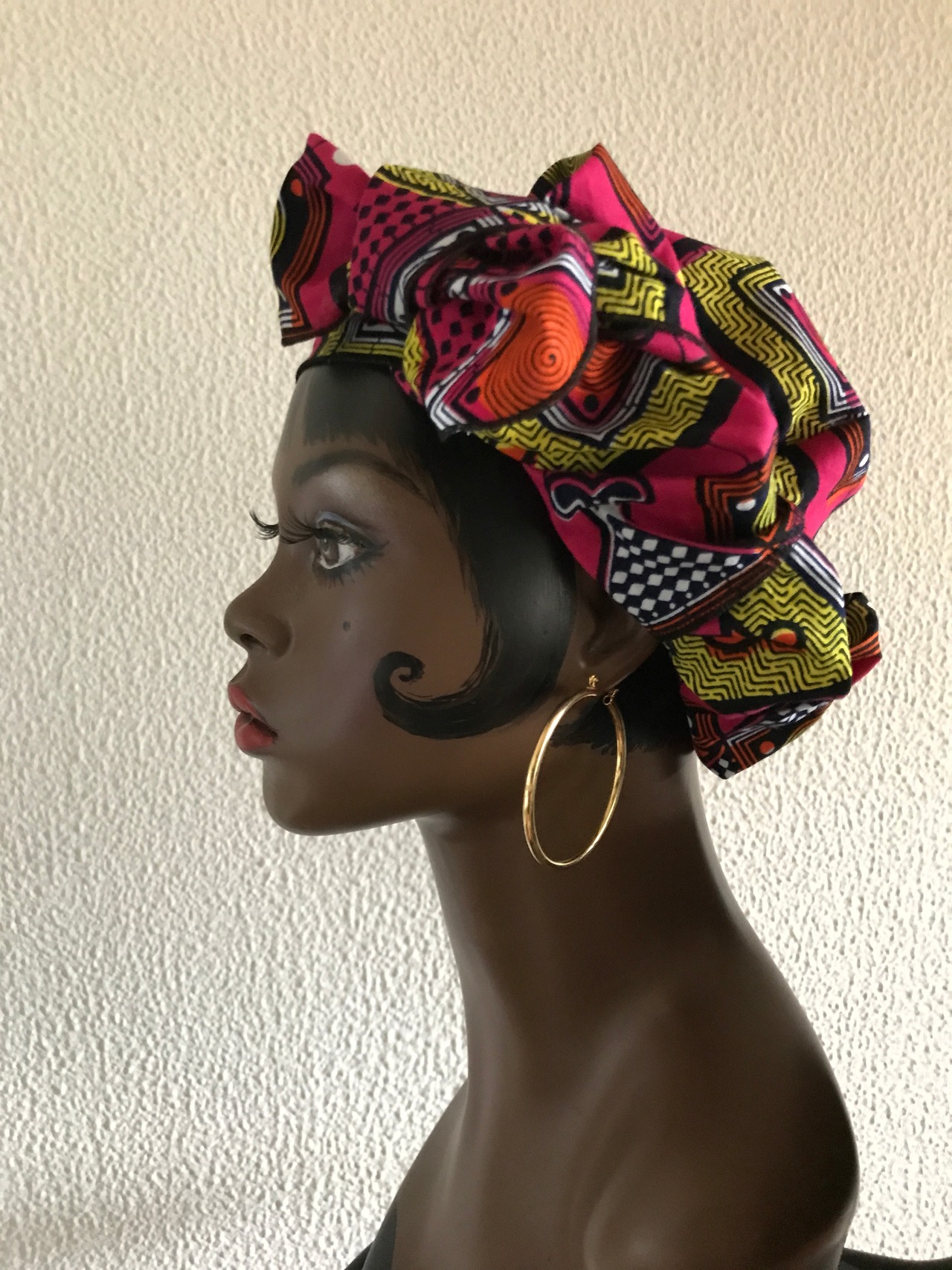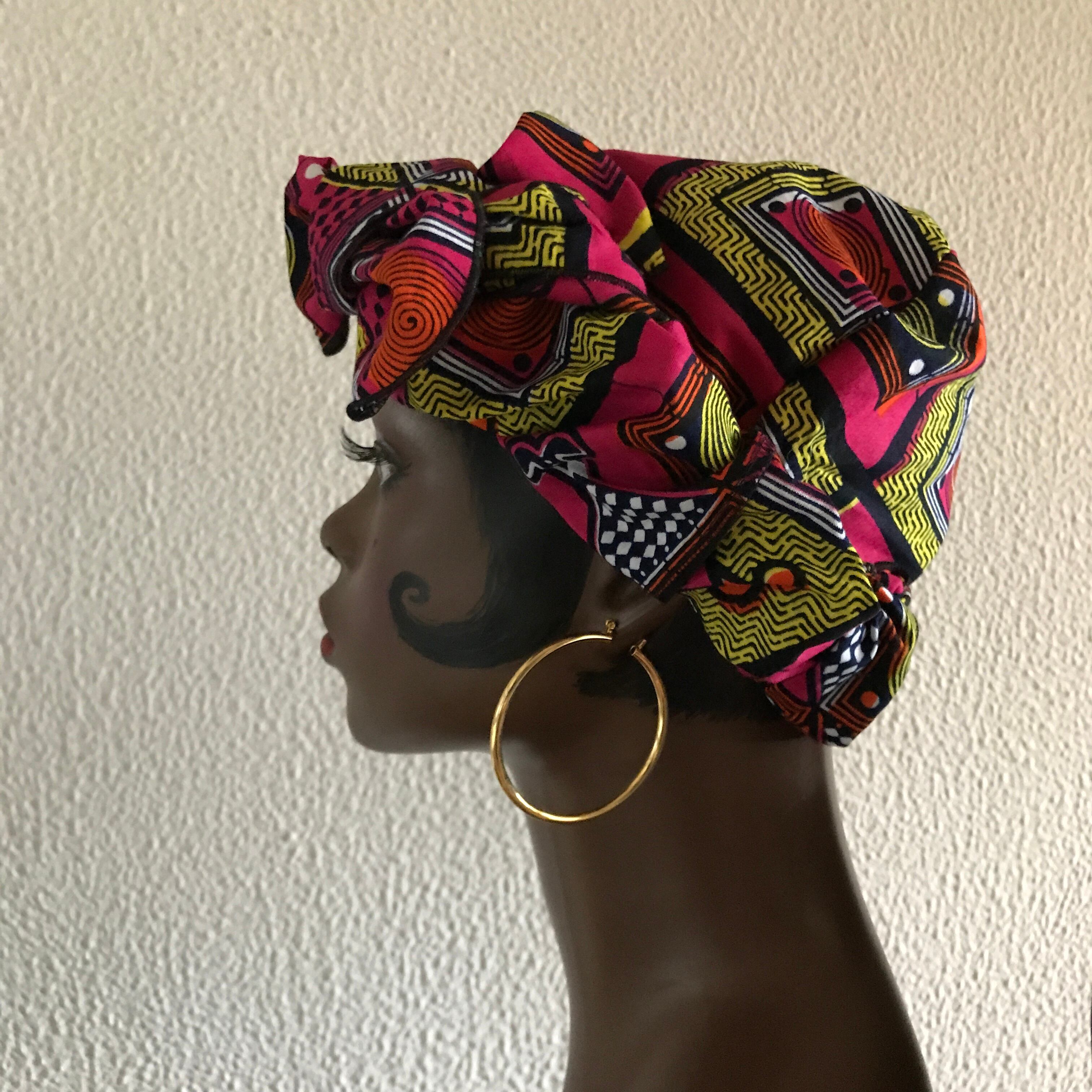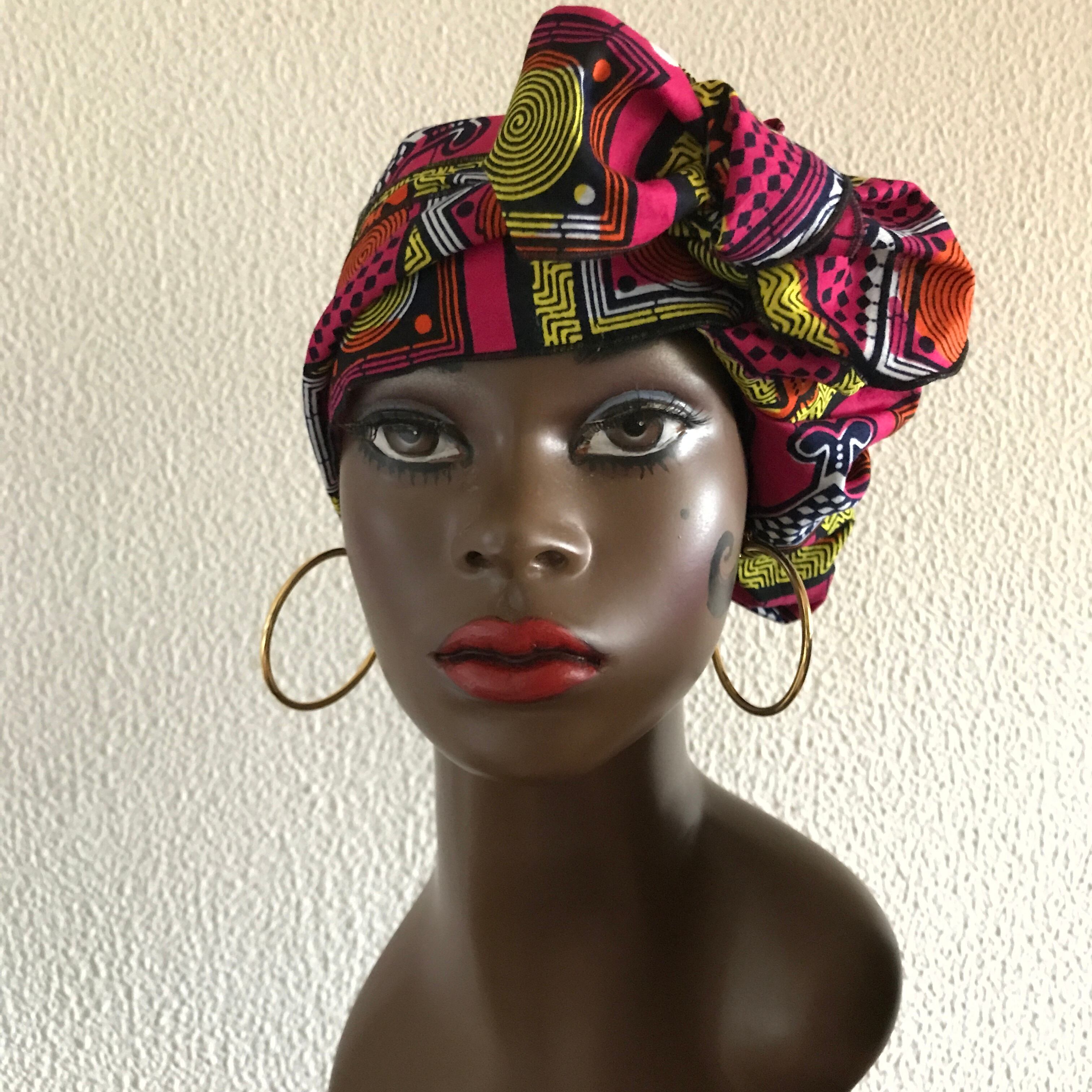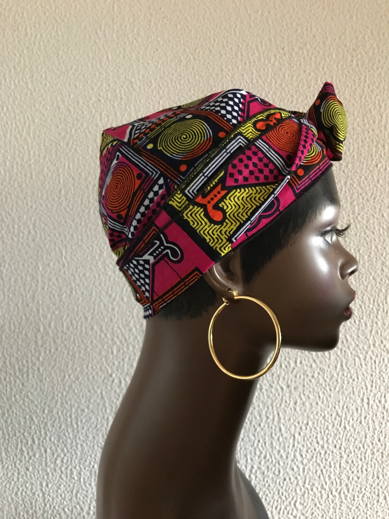 定番のドゥーラグをアフリカンプリントでつくりました。